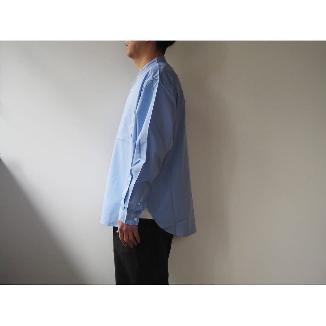 デザインはステッチを省いたミニマムなデザインが特徴のリラックスフィットのバンドカラーシャツタイプ。