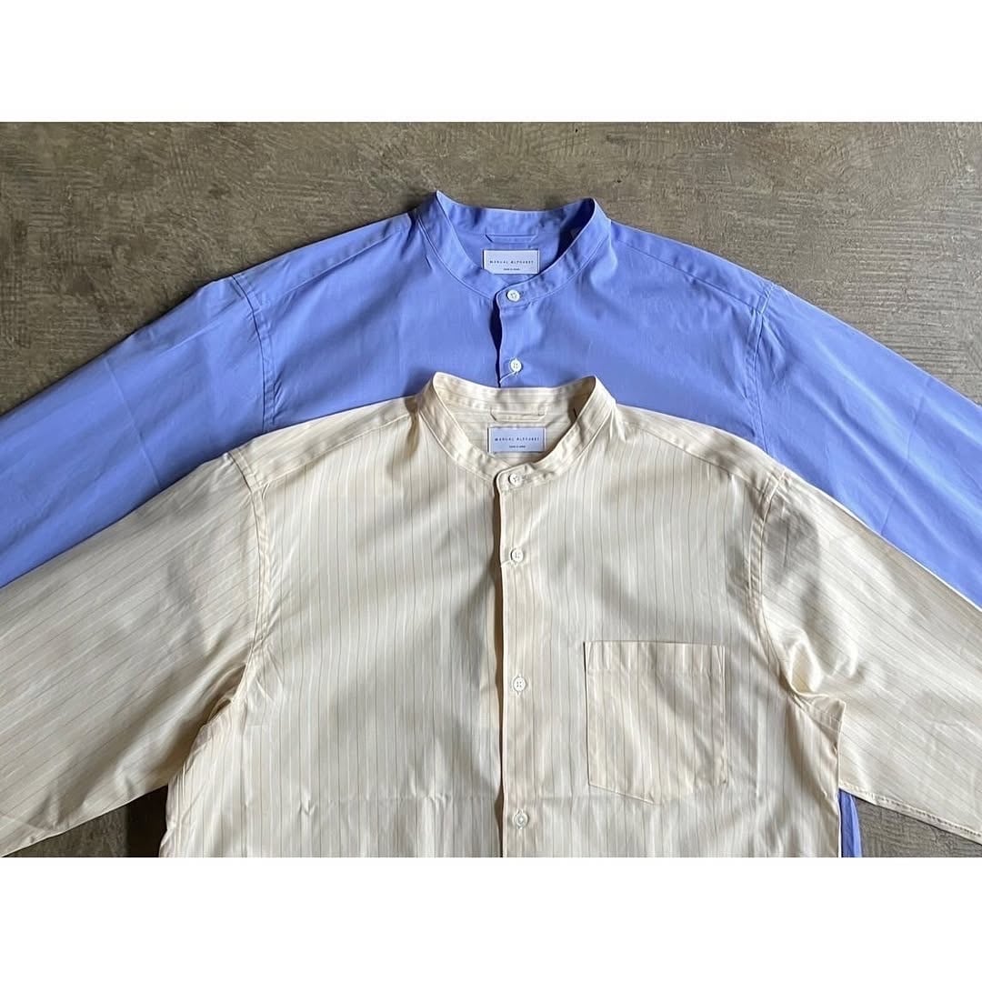"Manual Alphabet"2025年春夏コレクションより、新作のバンドカラーシャツが入荷しました。