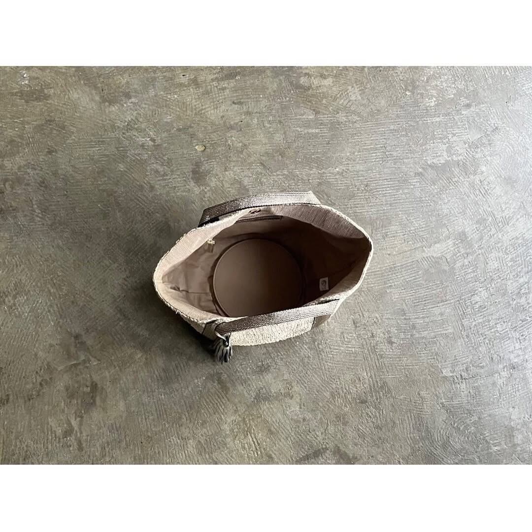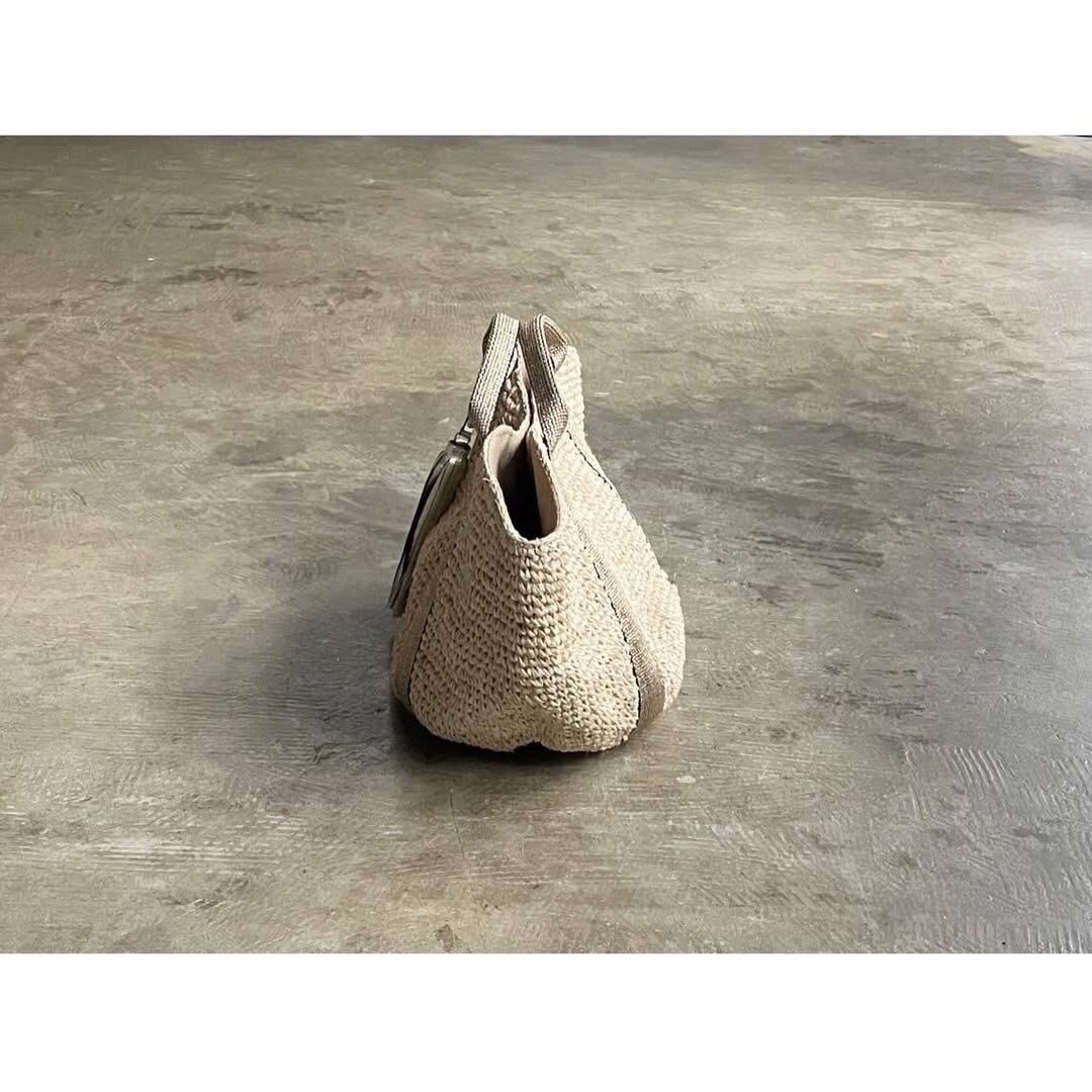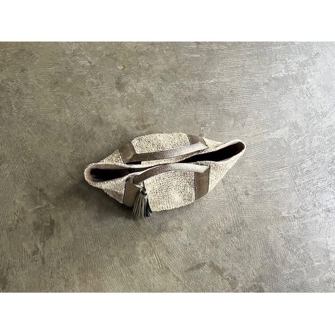 テープ素材のハンドルと上品に揺れるタッセルが、天然素材ならではのカジュアル感にフェミニンな印象を添えるアクセントに。