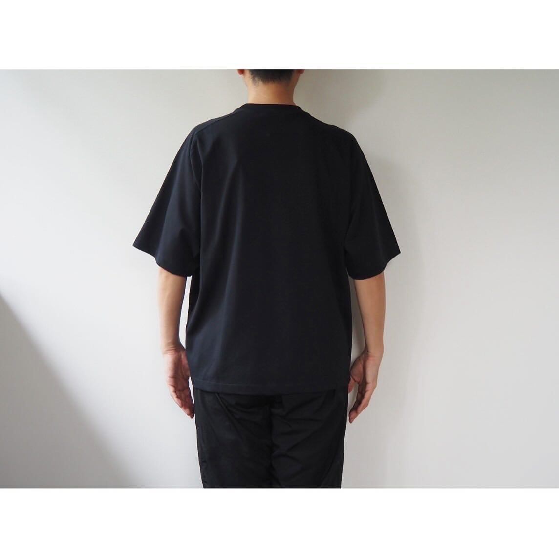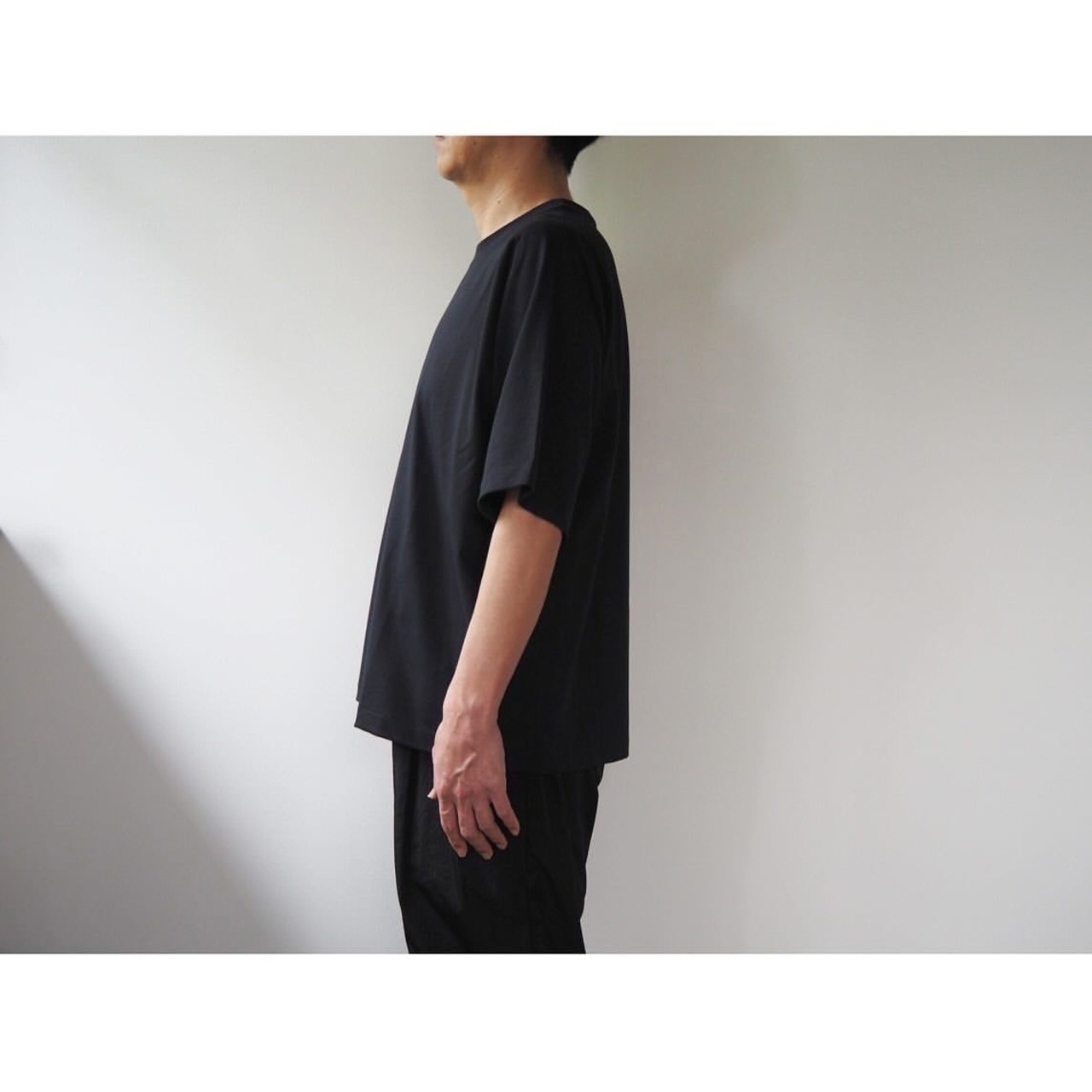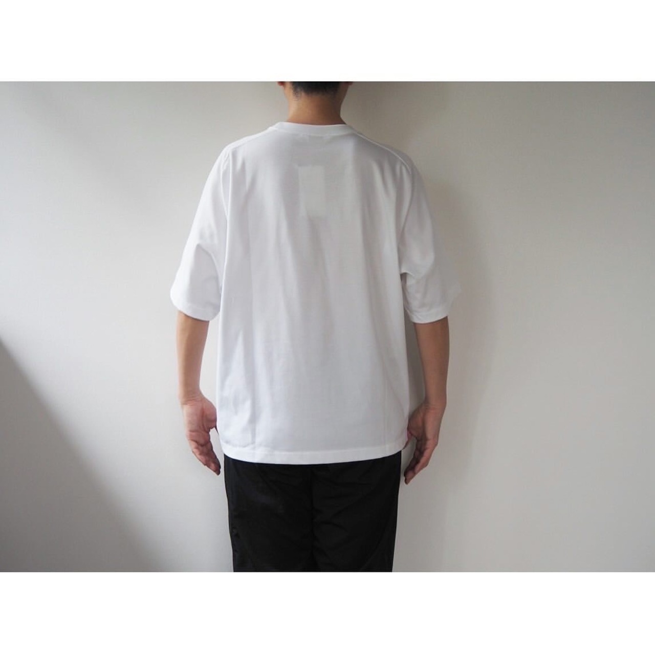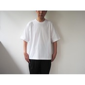 袖丈は通常の半袖よりやや長めに設定されており、リラックス感のある雰囲気を演出しながら、1枚で様になるバランスの取れた仕上がりです。
