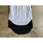 前身頃と後身頃で丈の長さの変えいますので、着用時のラフでこなれた感じの抜け感が簡単に演出できる秀逸なデザインになっています。