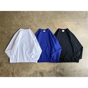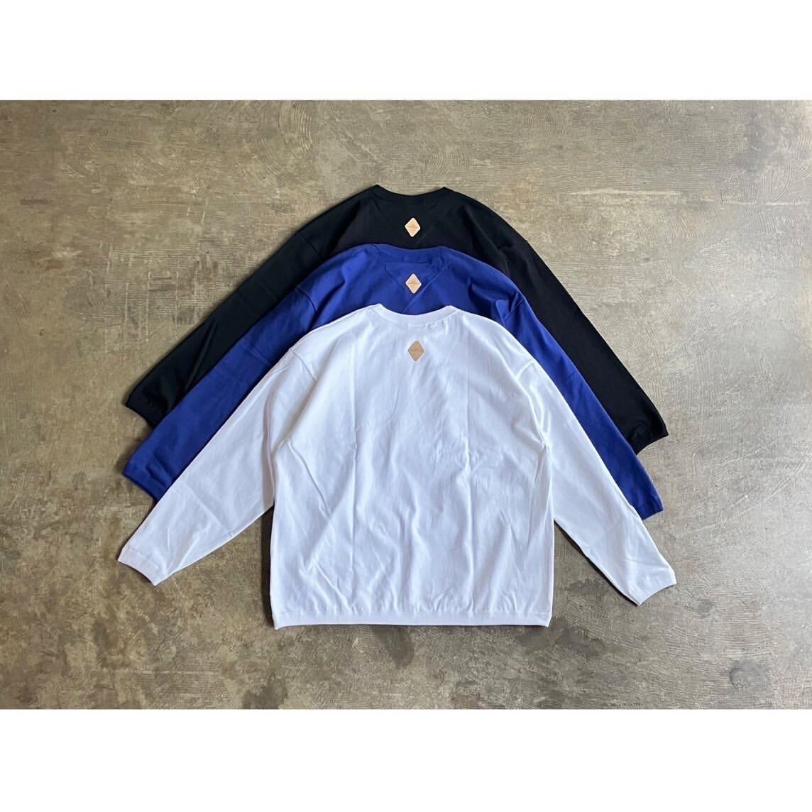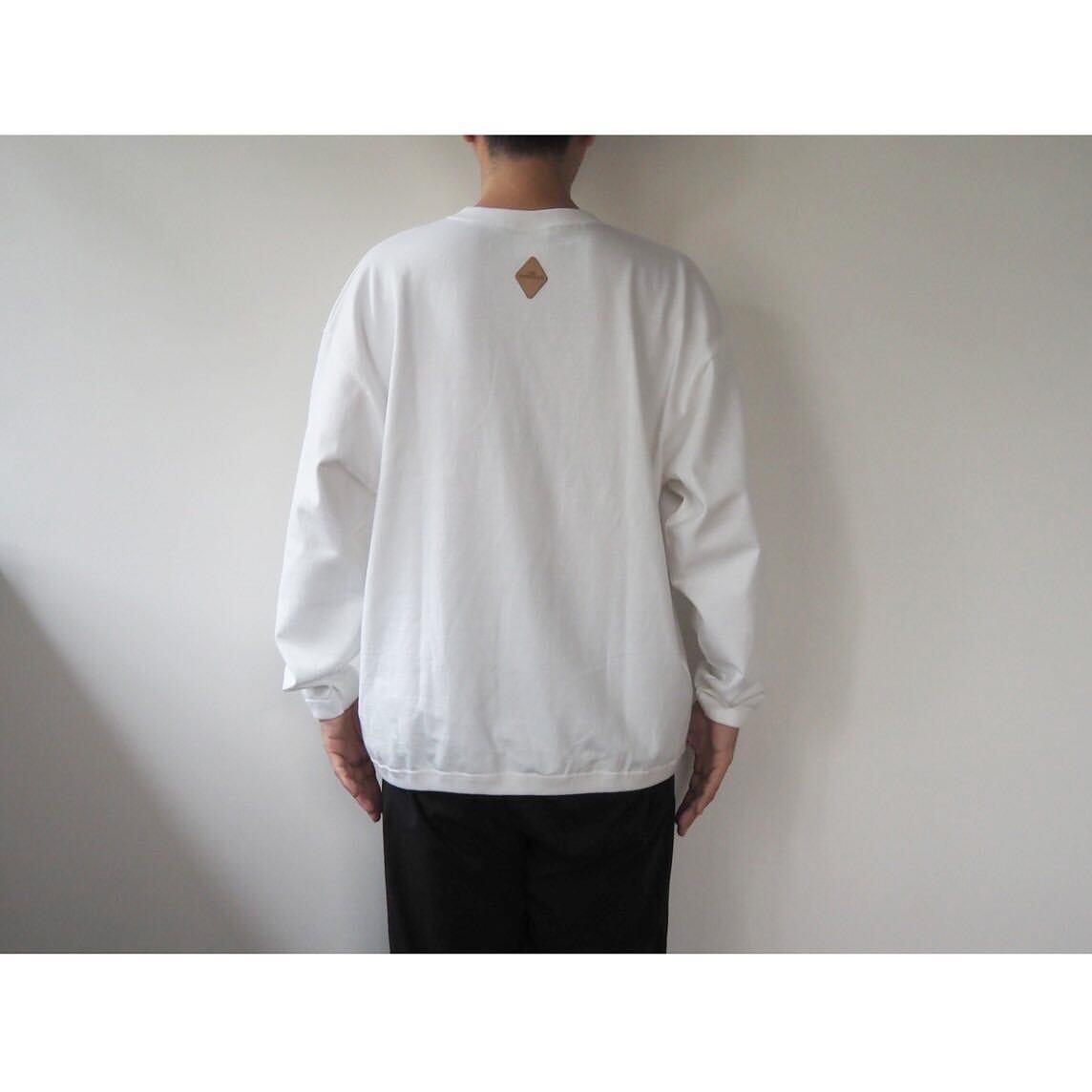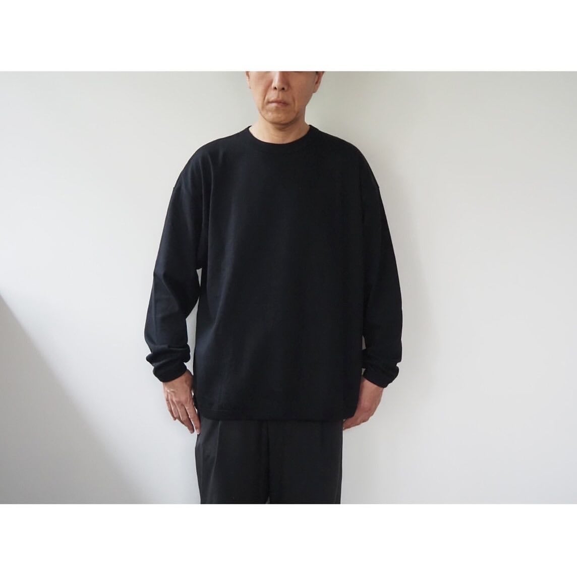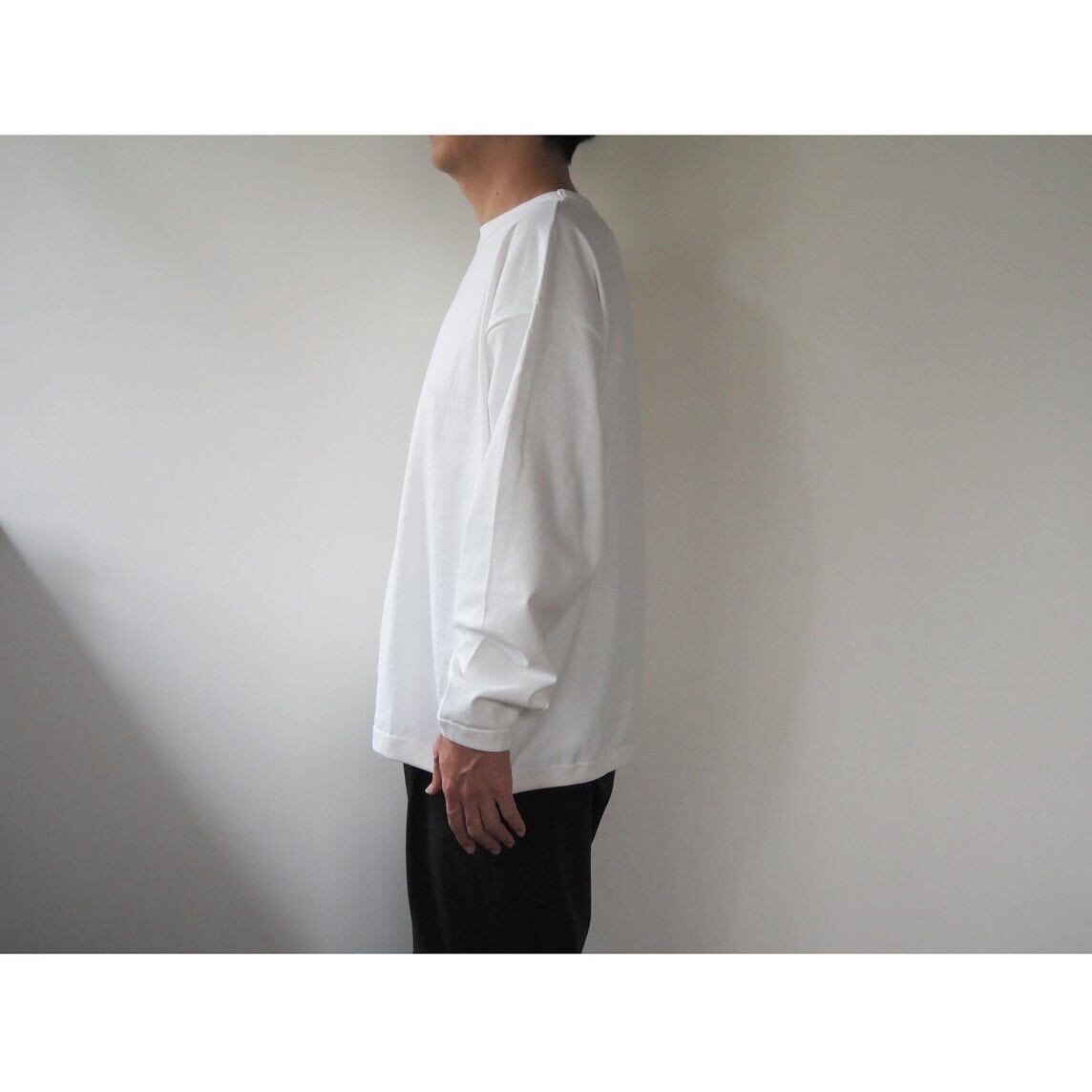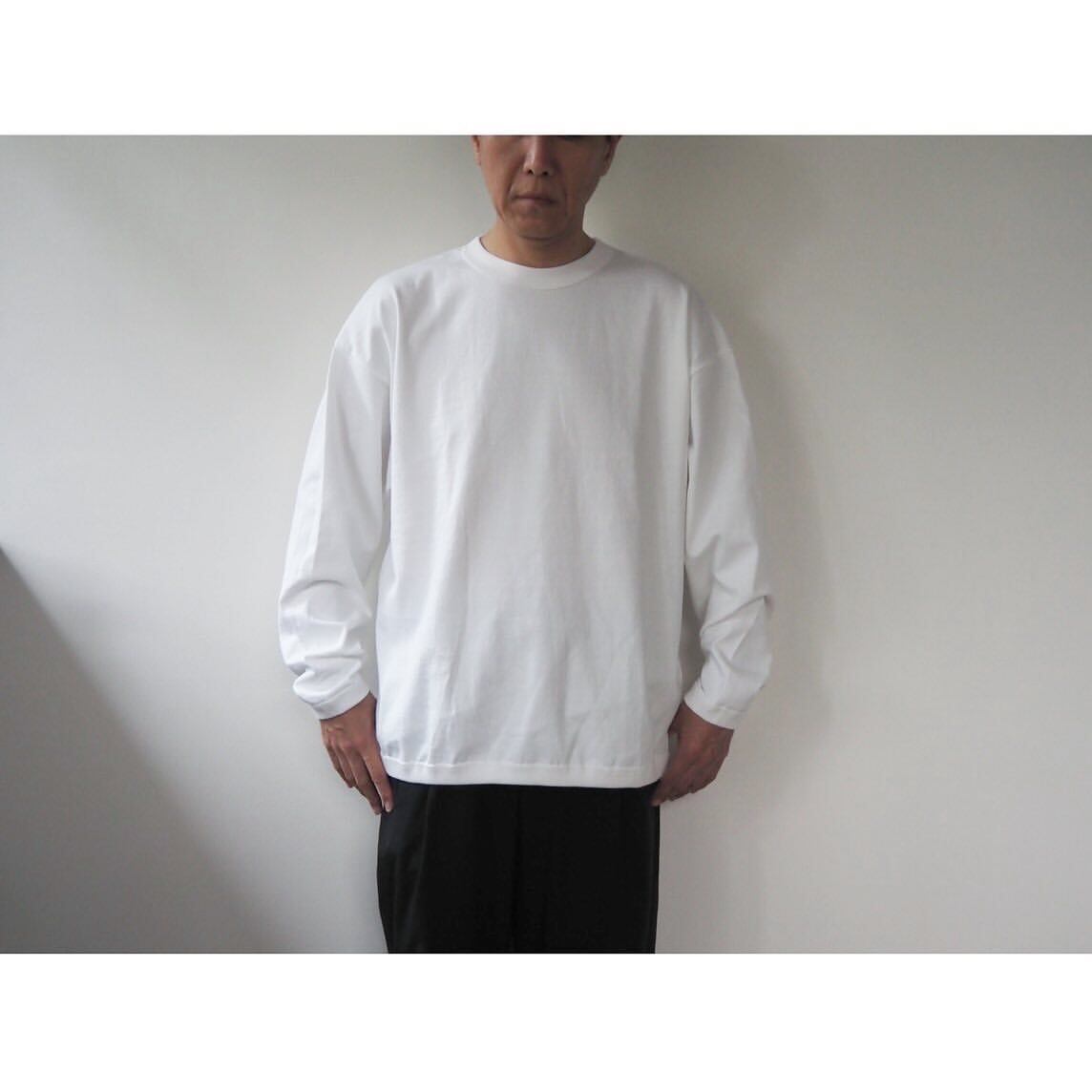 Tシャツのデザインは、袖口と裾をリンガー仕様で仕立て上げた、ロンTee以上スウェット未満な雰囲気に仕上げた1着。