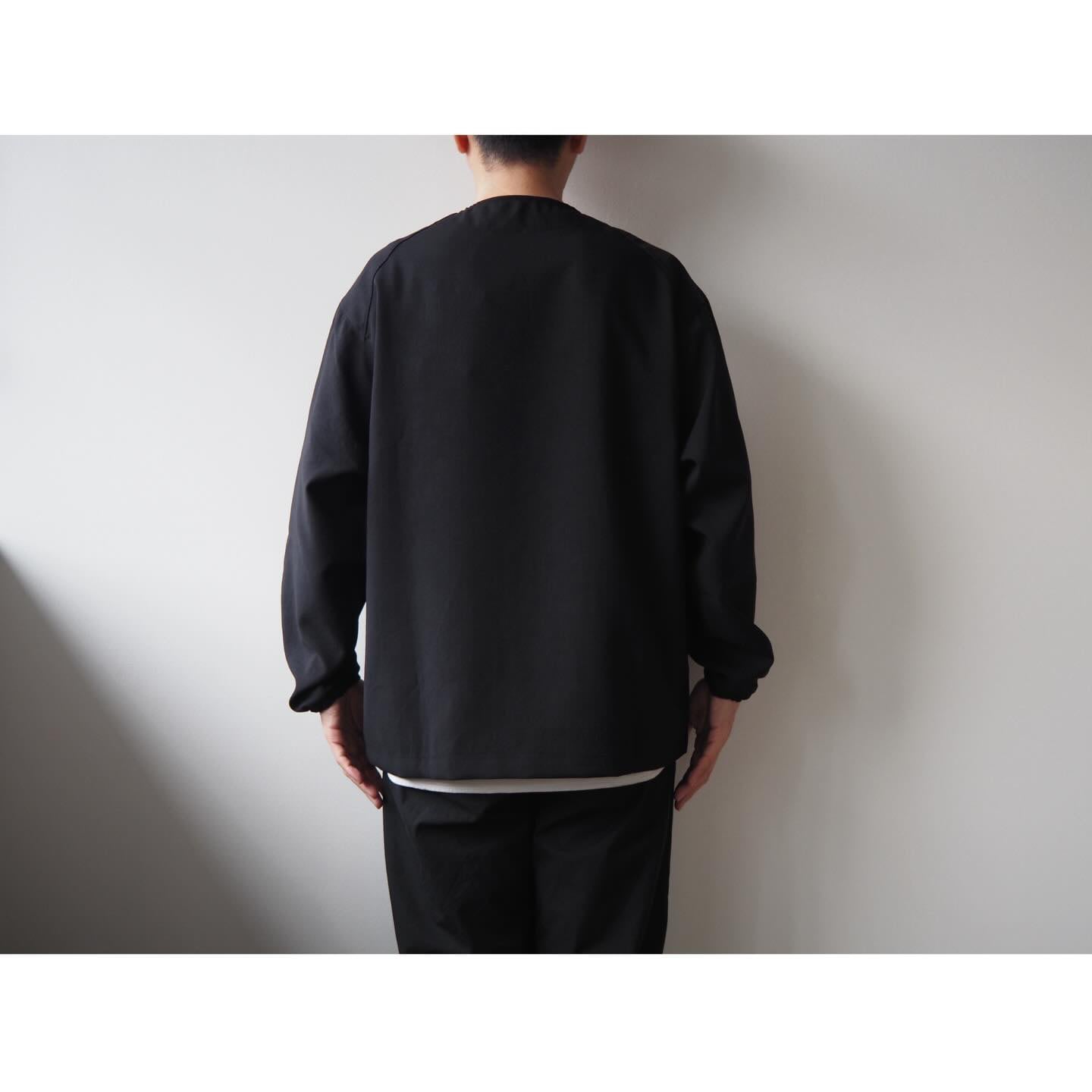 浅めに設定したVネックに、袖口はゴム仕様で程よいフィット感をプラス。