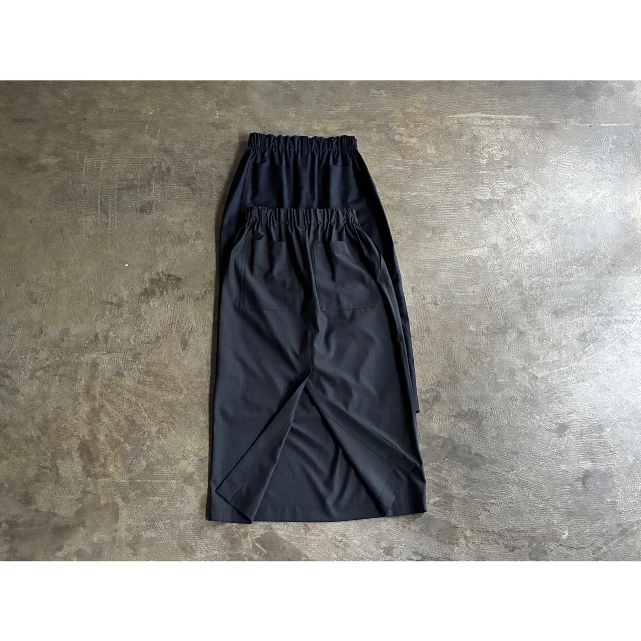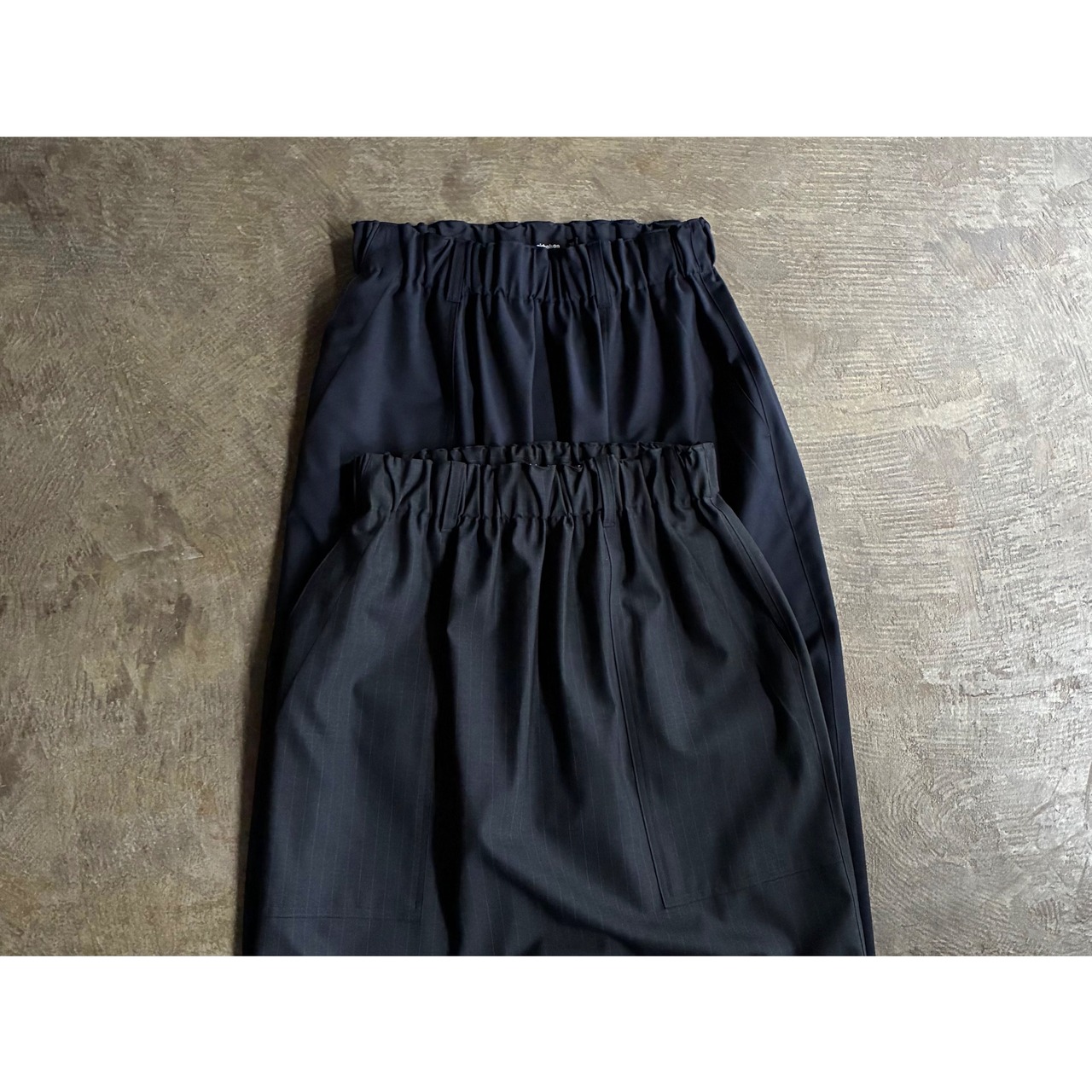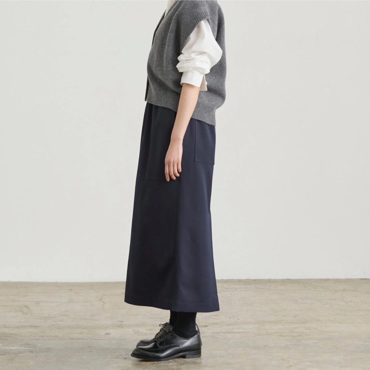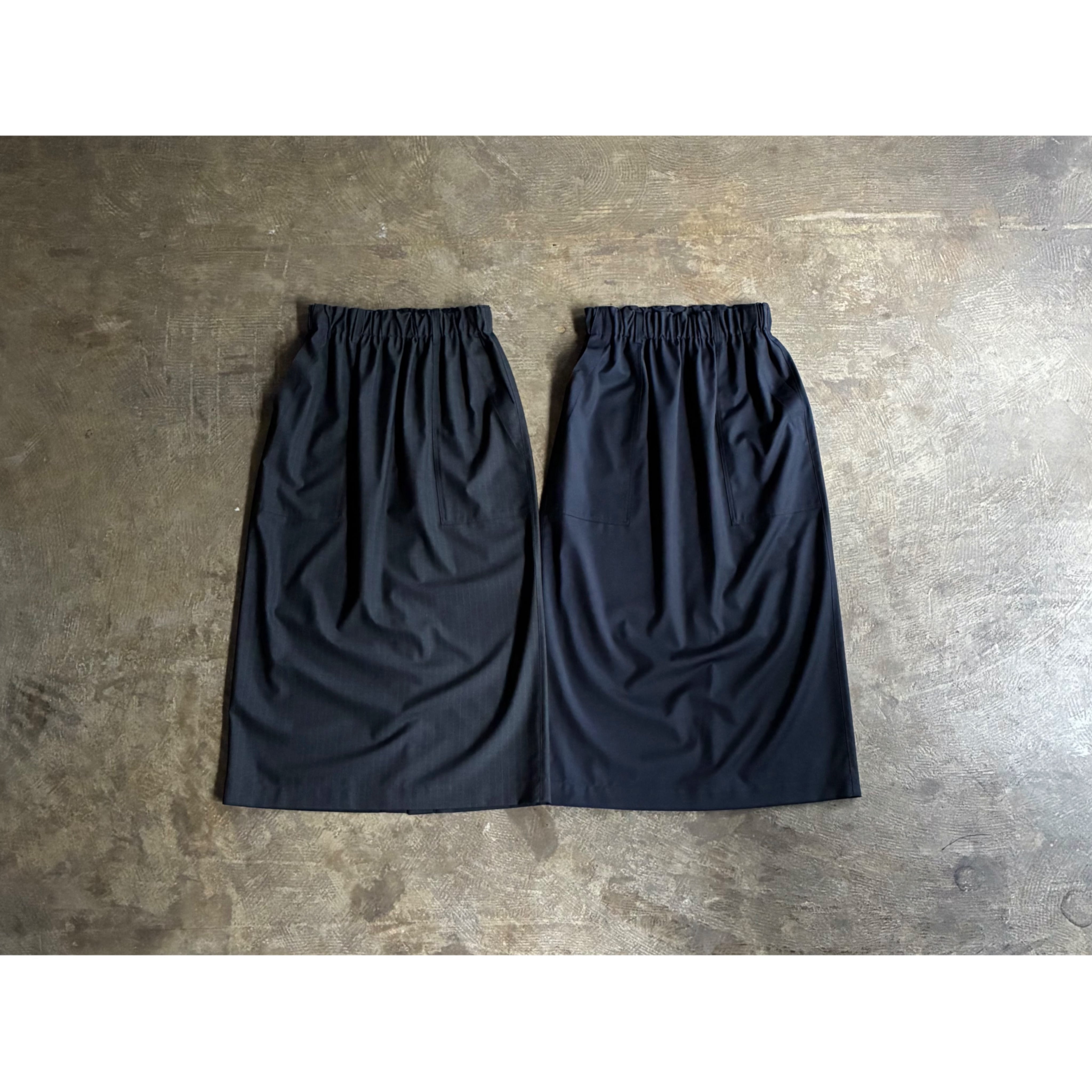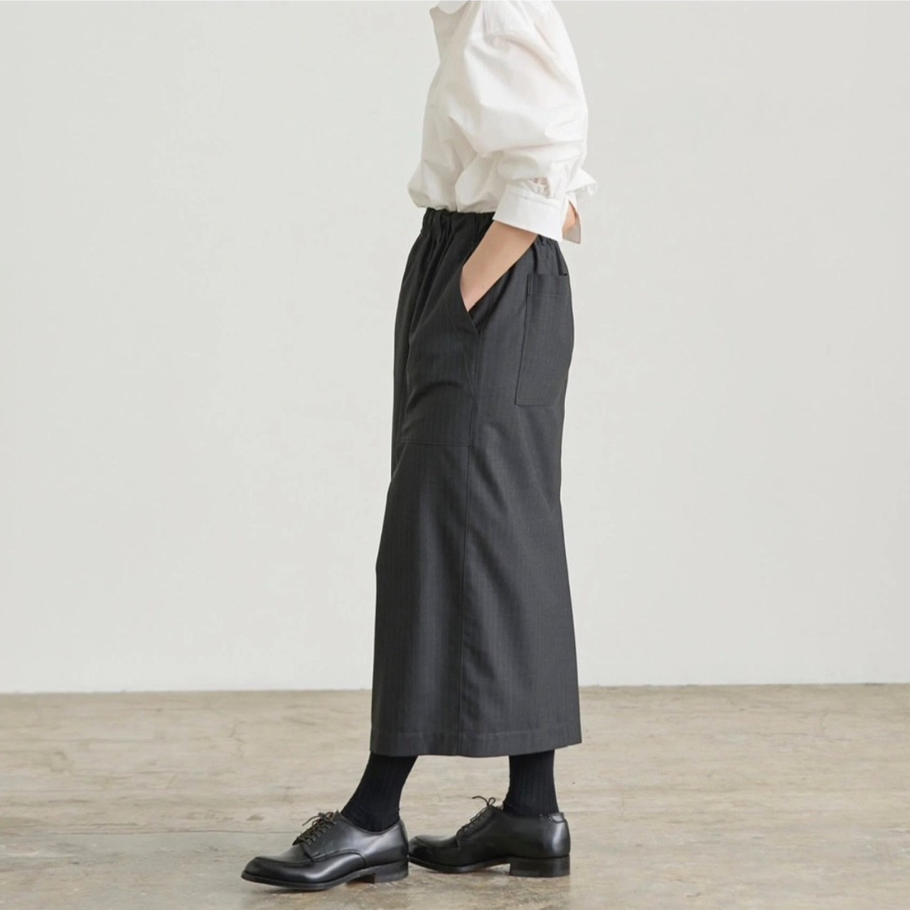 スカートのデザインは、ベーカーパンツ(ファティーグパンツ)の要素を取り入れつつ、"nicholson&nicholson"らしい上品さで仕上げたデザイン。