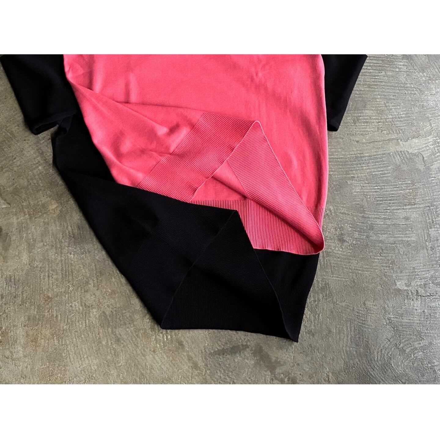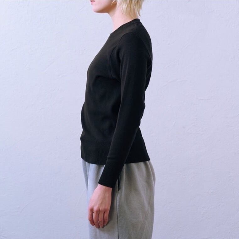 上品なハイゲージニットのようなコットンクルーネックニットソー。