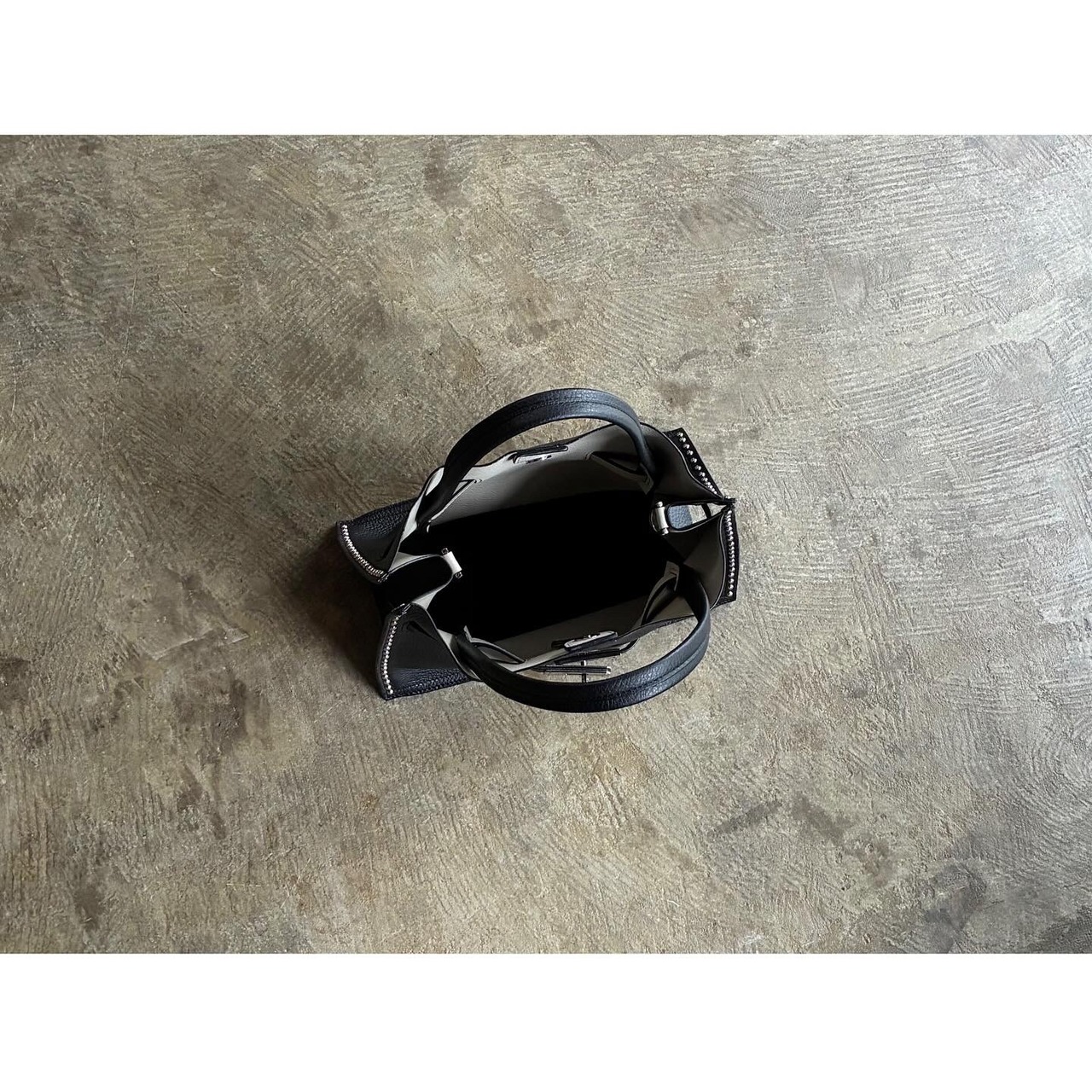 無駄のない美しいフォルムに、さりげないスタッズとシルバーの金具がアクセントとなり、洗練された大人の雰囲気を演出してくれます。