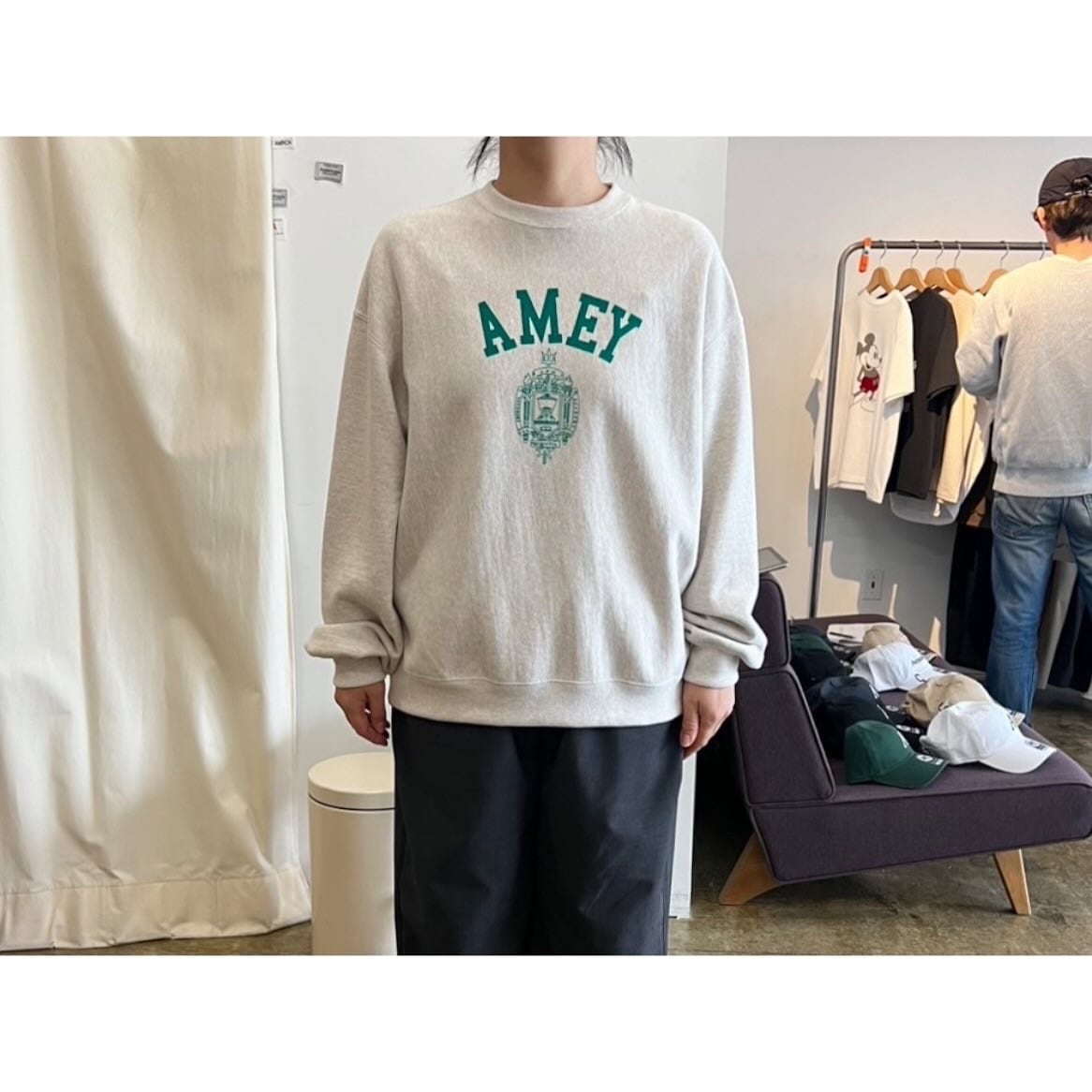 プリントのデザインは、「AMEY」のロゴを用いて、"AMERICANA"オリジナルのカレッジプリントデザインをフロッキープリントにて施しています。