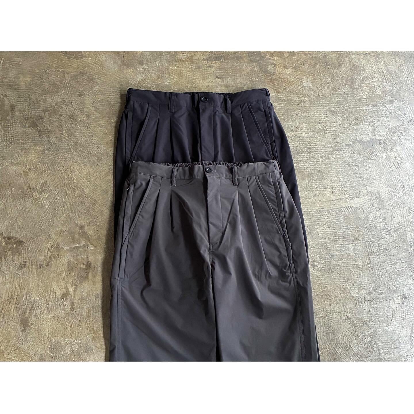 ボトムスのデザインは、トラウザーズとスポーティーなパンツを掛け合わせた、タックパンツデザイン。