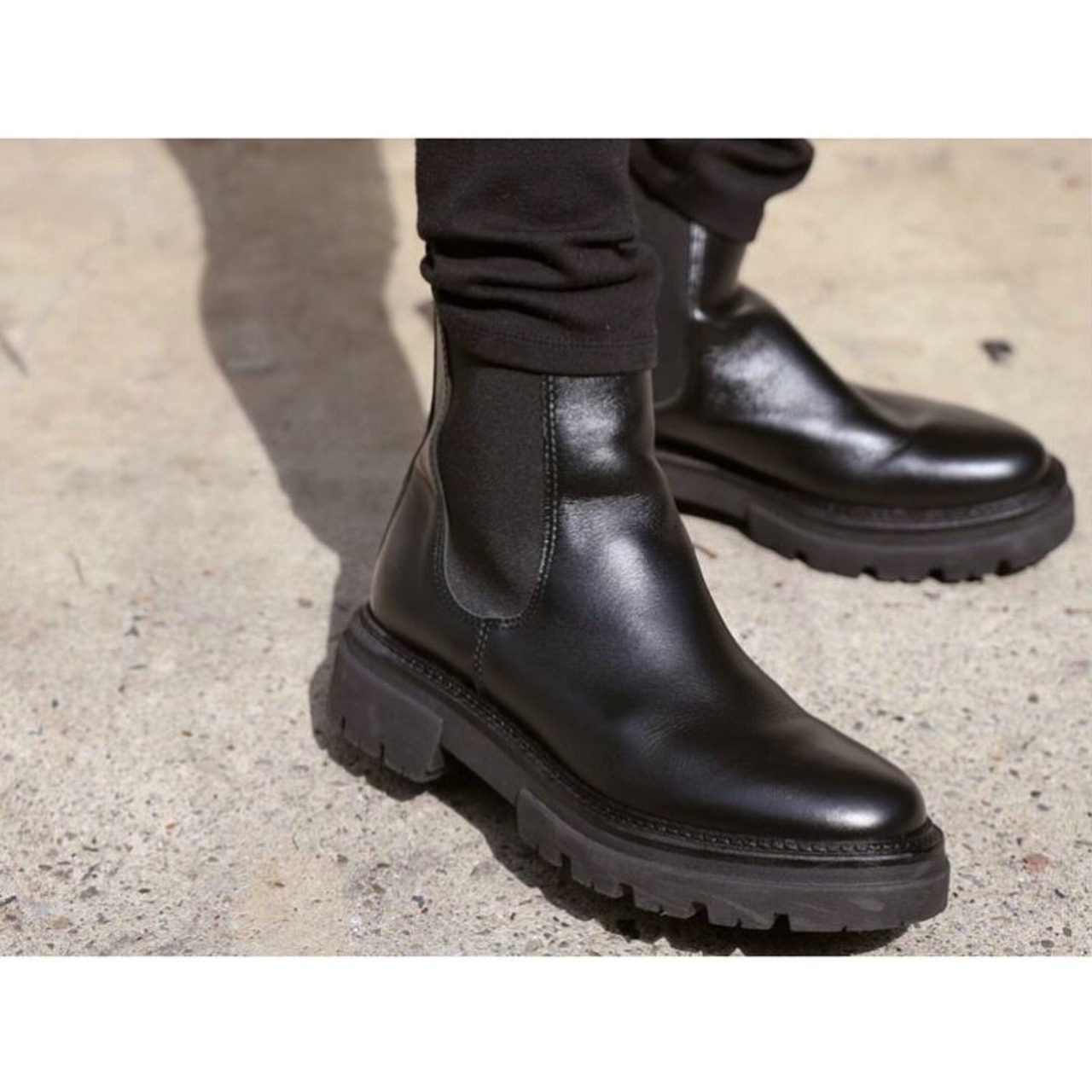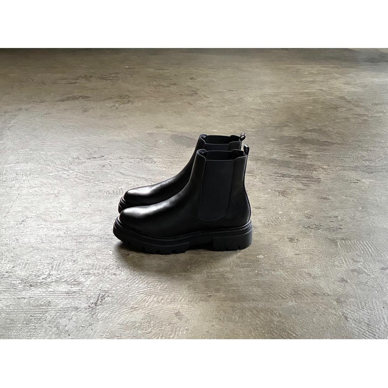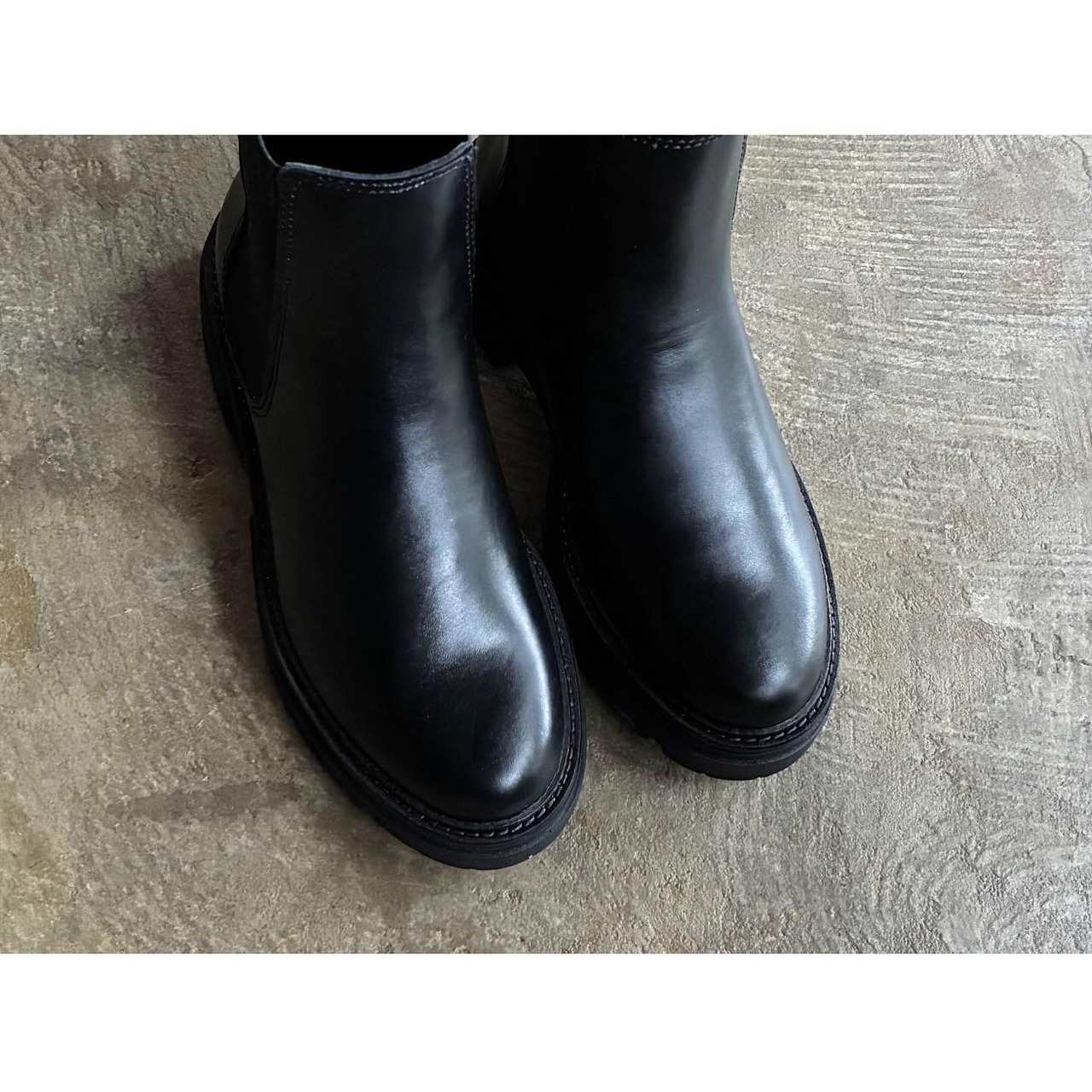 定番のチェルシーブーツに今の空気をさりげなく落とし込んだ、洗練された表情です。