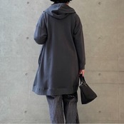 ドロップショルダーとゆとりのあるシルエットがほど良い抜け感を生み、膝丈にかかるロング丈が体をやさしく包み込むデザインとなっています。