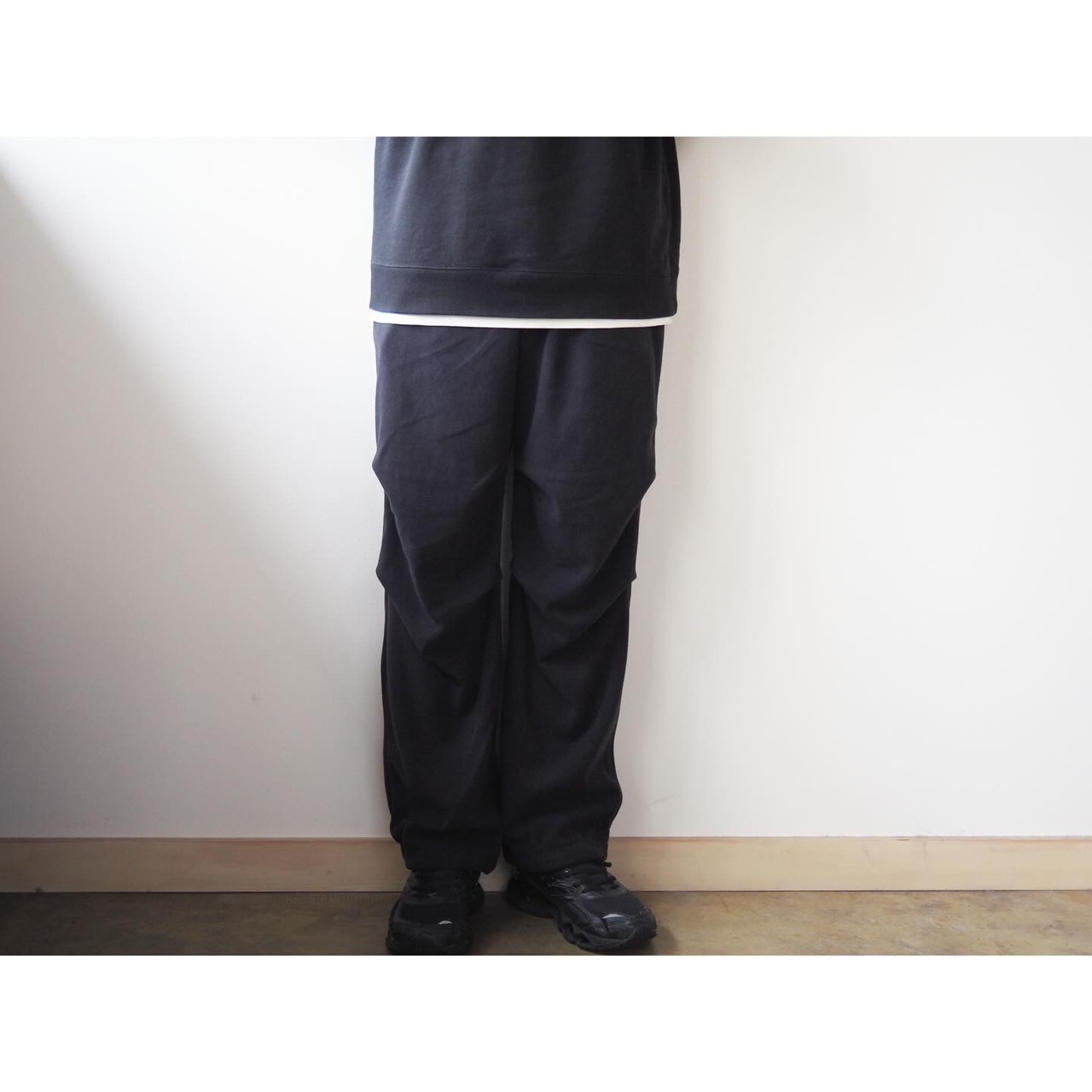 全体にゆとりを持たせつつも、タウンユースを想定して無駄のないバランスに整えられ、日常のスタイリングに自然と馴染むシルエットに仕上げられています。