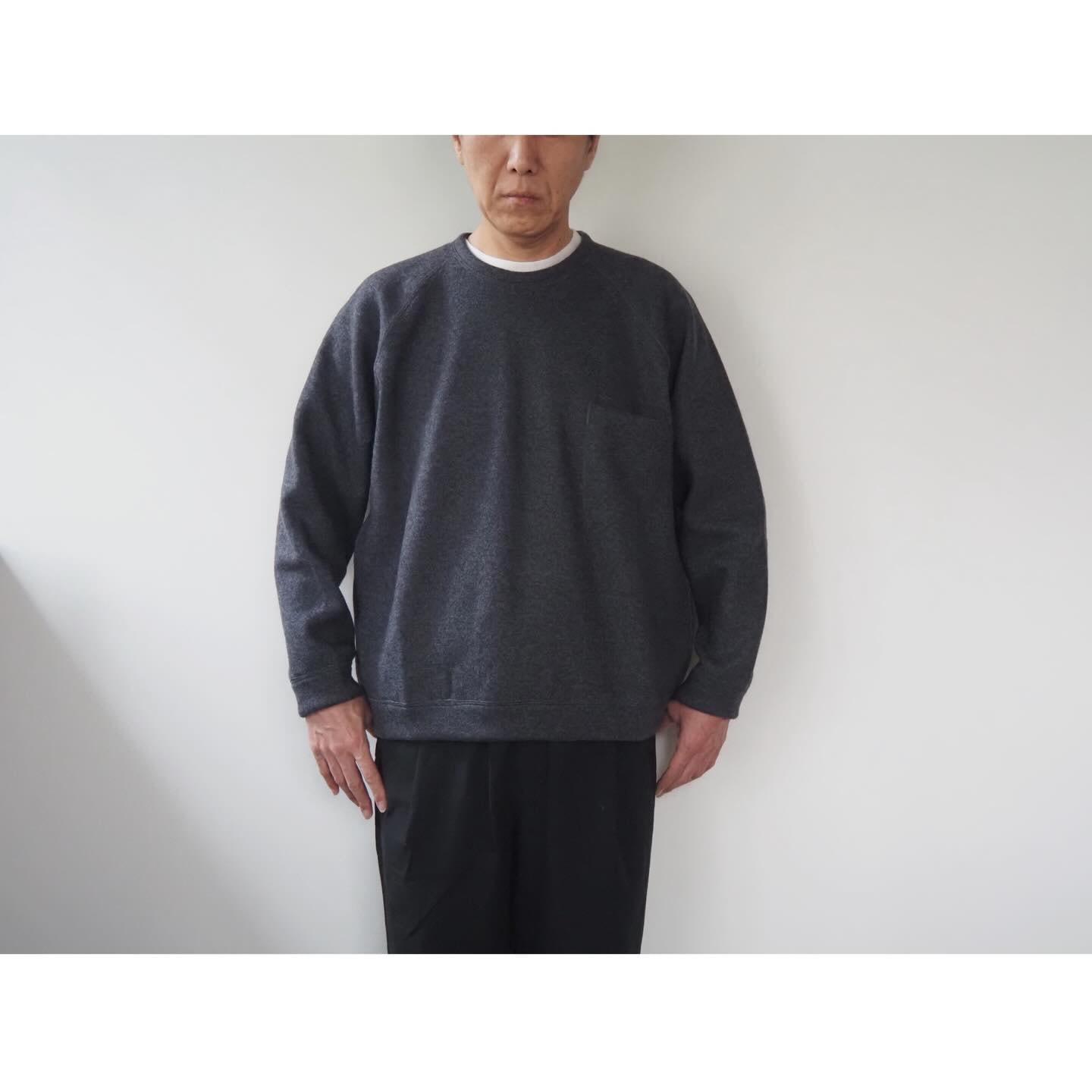 ディテールの特徴は、ラグランスリーブで仕立てることで、肩まわりの可動域が自然に広がり、動きにストレスを感じない快適な着心地に。