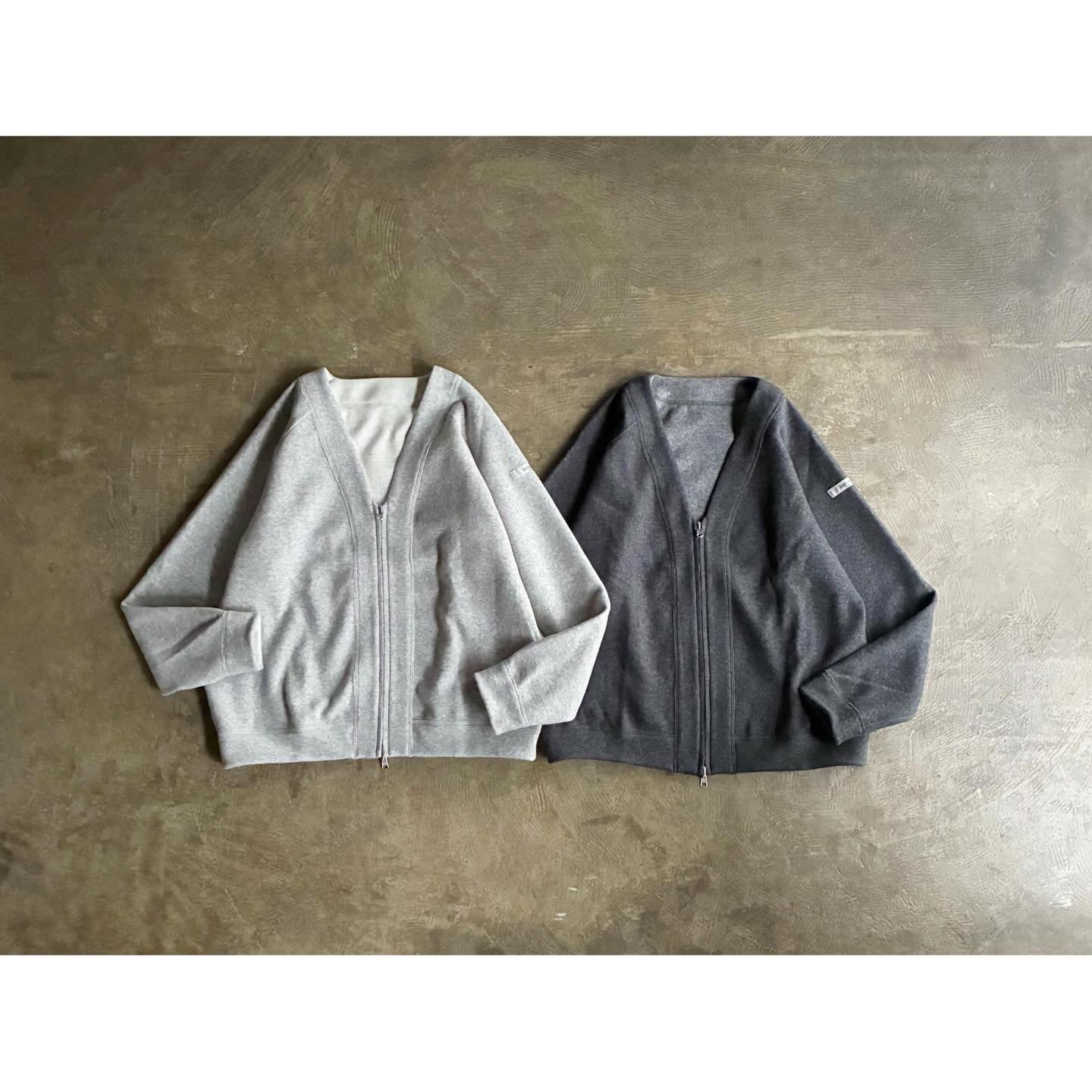 デザインは、リバーシブル仕様で仕立てたVネックタイプのカーディガン。