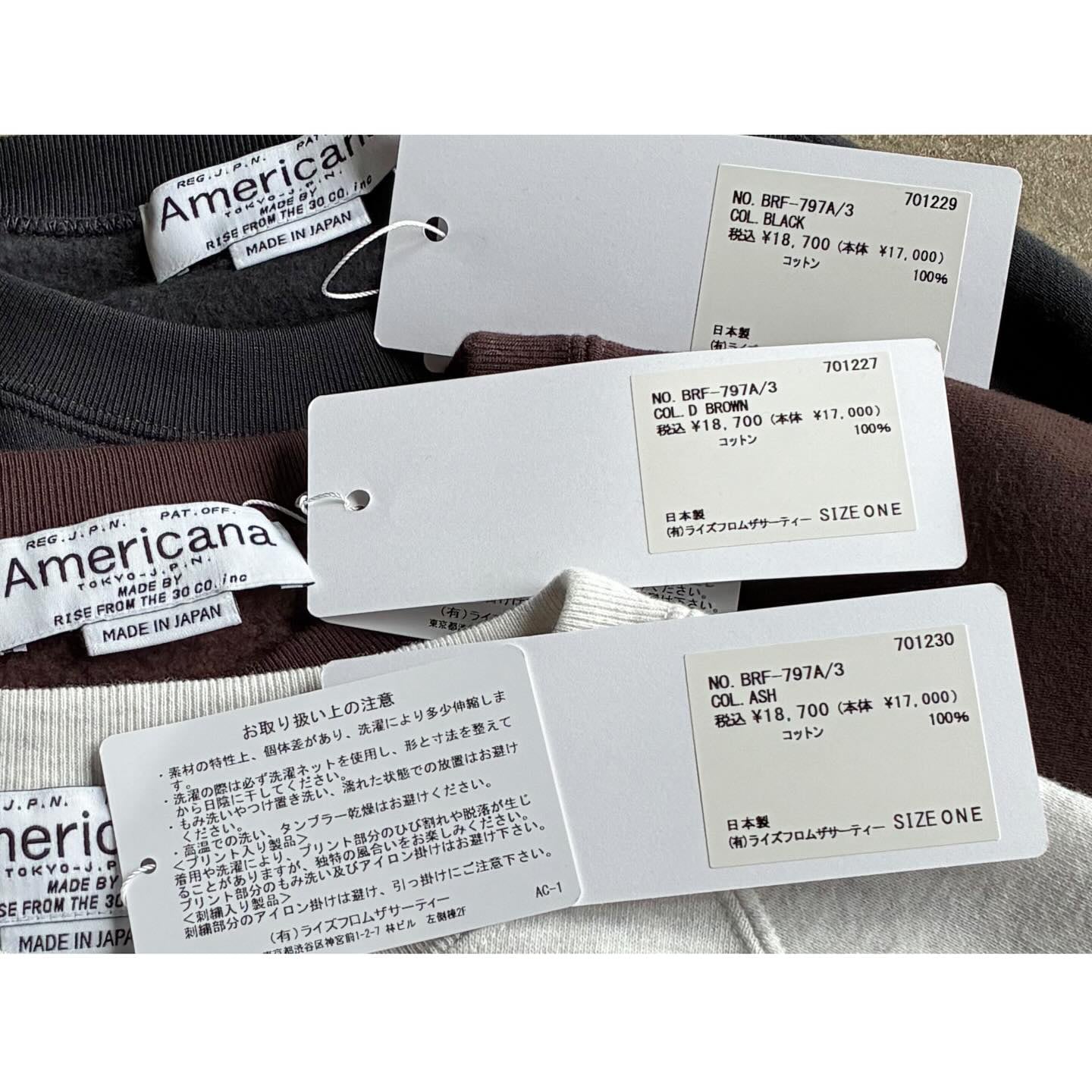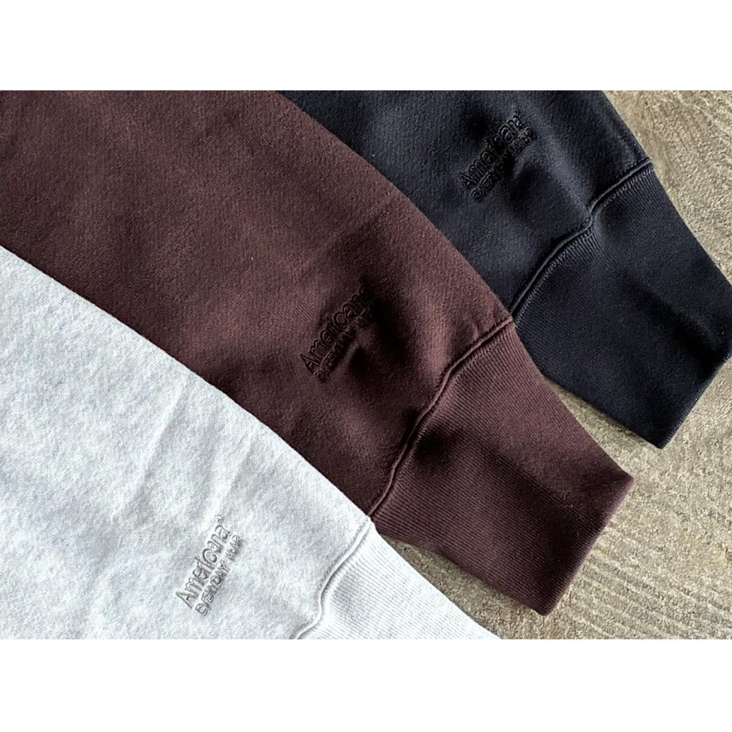 左袖口付近には、ボディと同色で「Americana EVERYDAY WEAR」の刺繍をさりげなく施し、控えめながらもブランドらしさを感じるアクセントになっています。
