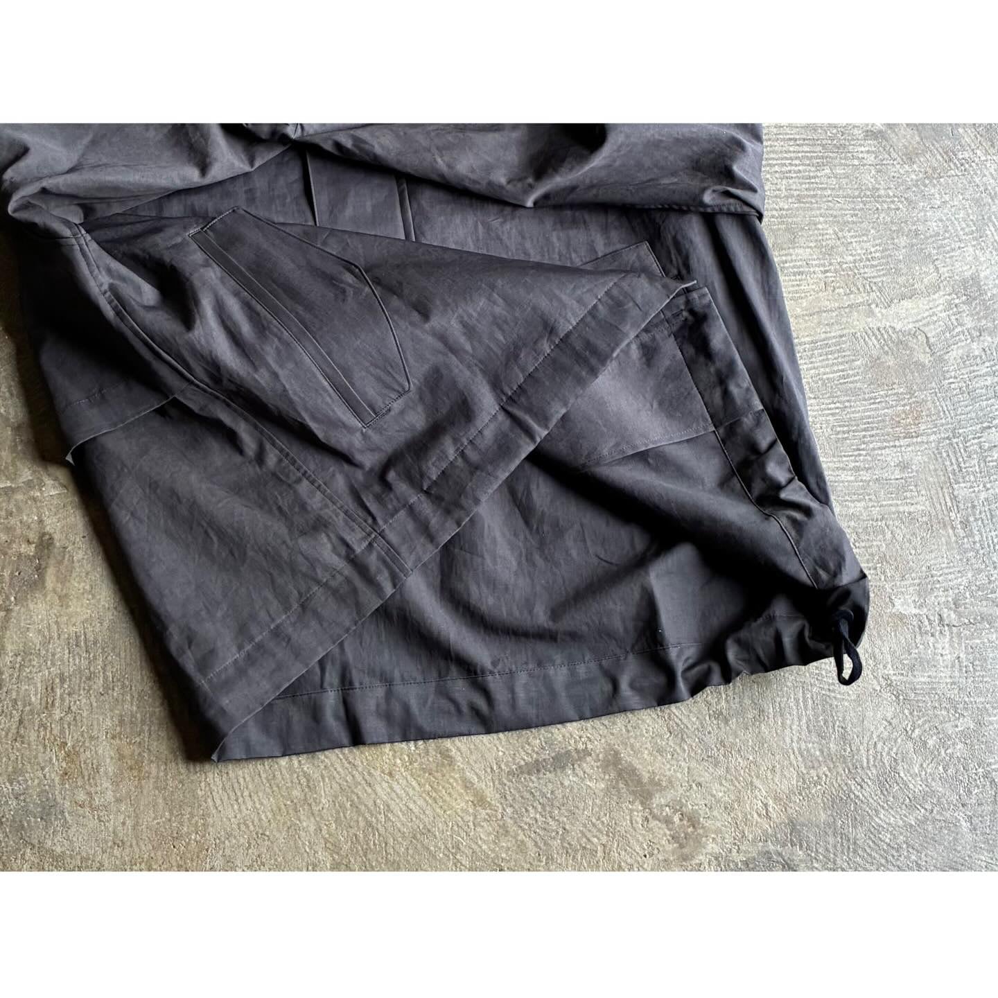 日常に取り入れやすいバランスへ再構築し、スタンドカラー仕様やポケットフラップ、袖のタック、裾のドローコードなど、随所にミリタリーデザインのエッセンスをさりげなく落とし込んでいます。