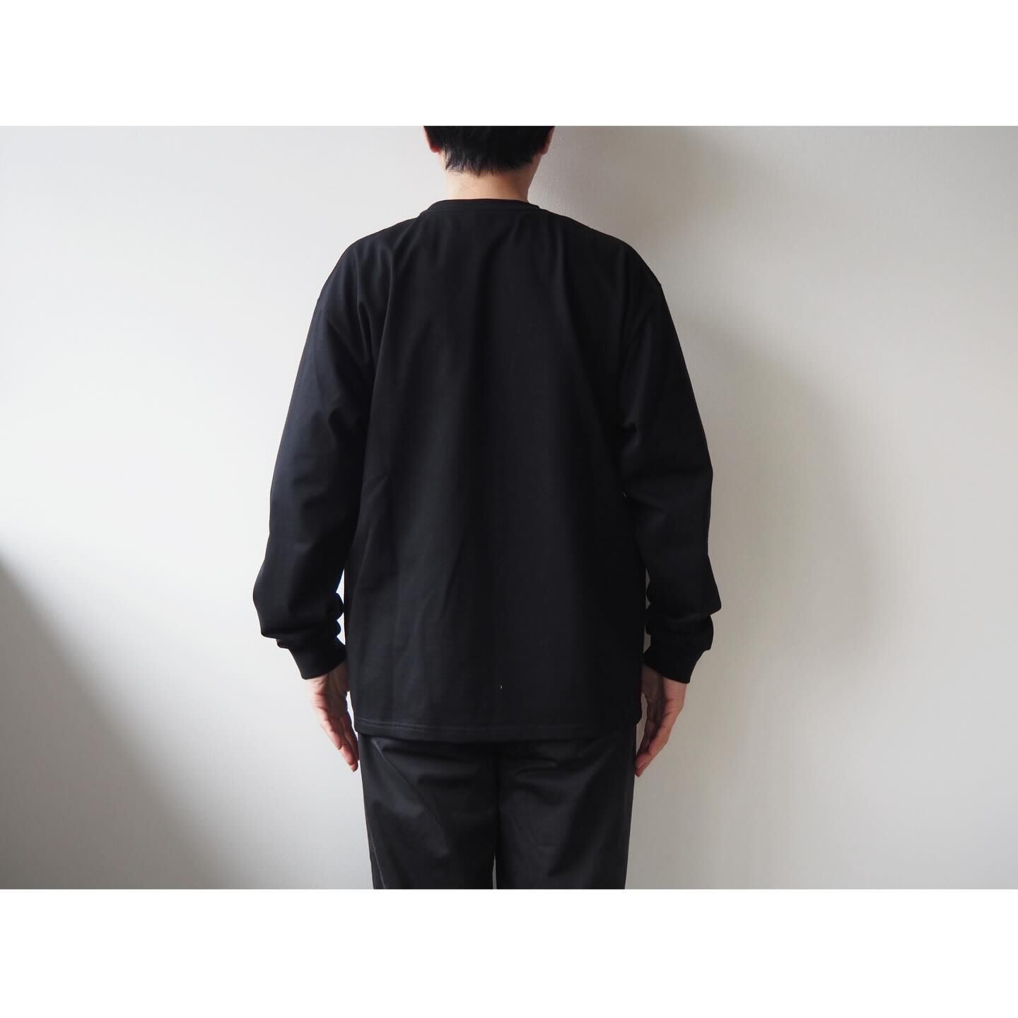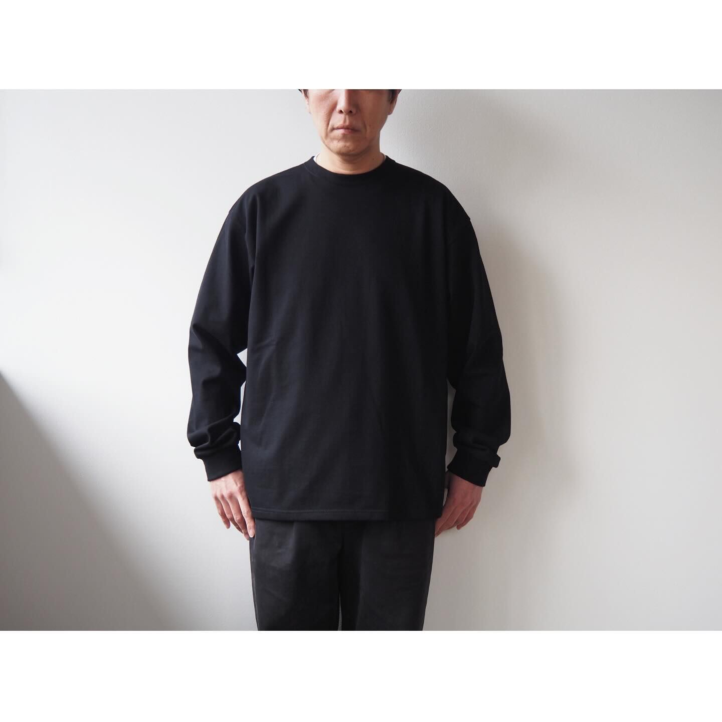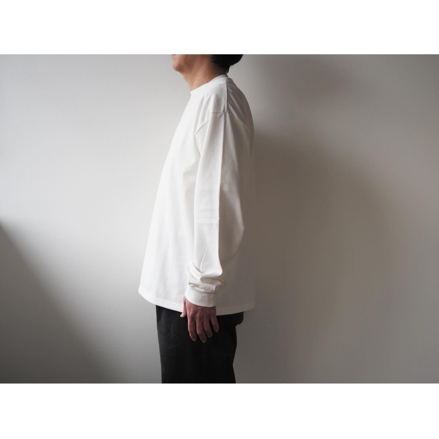 デザインは、シンプルなクルーネック仕様に袖口をリブで仕上げたロングスリーブTシャツ。