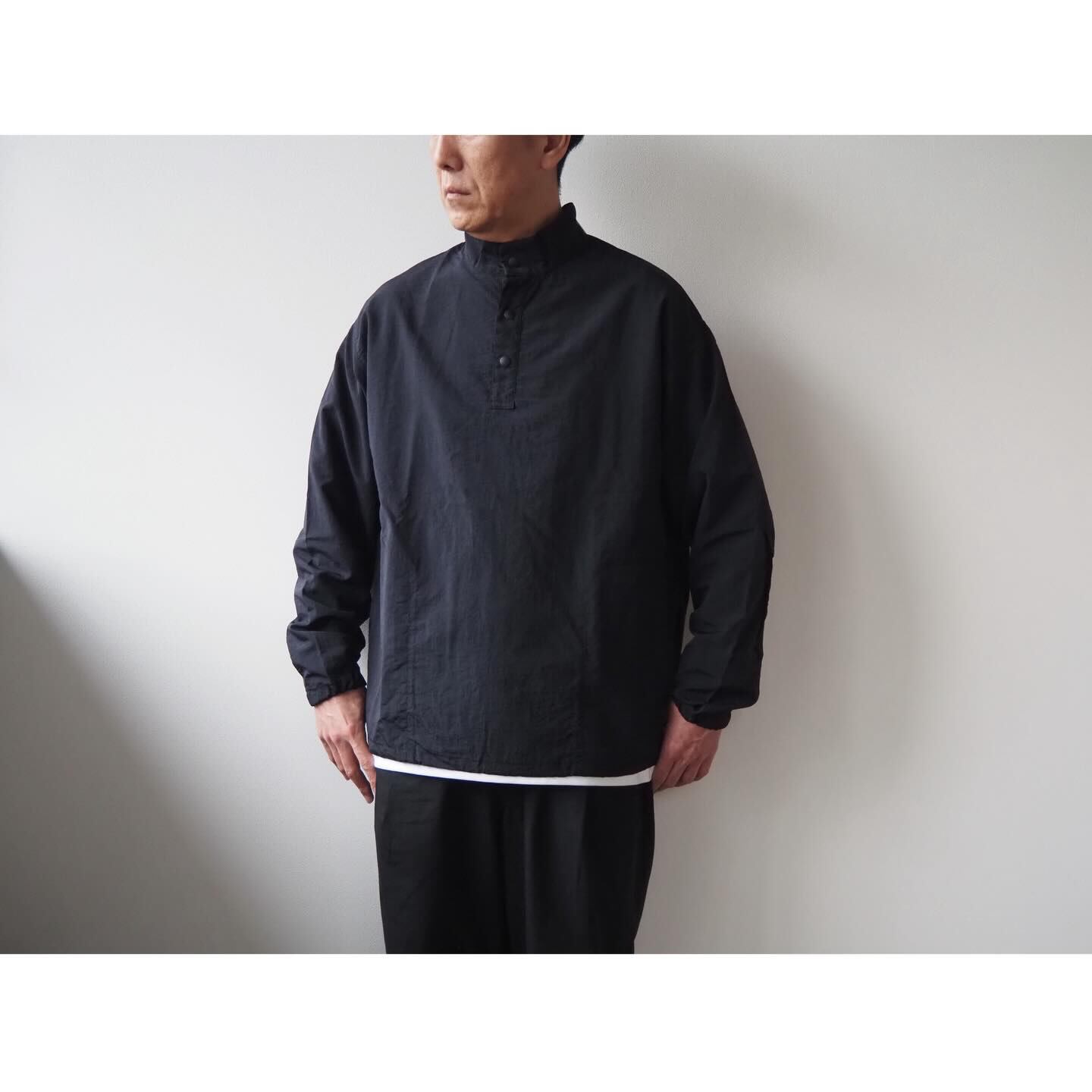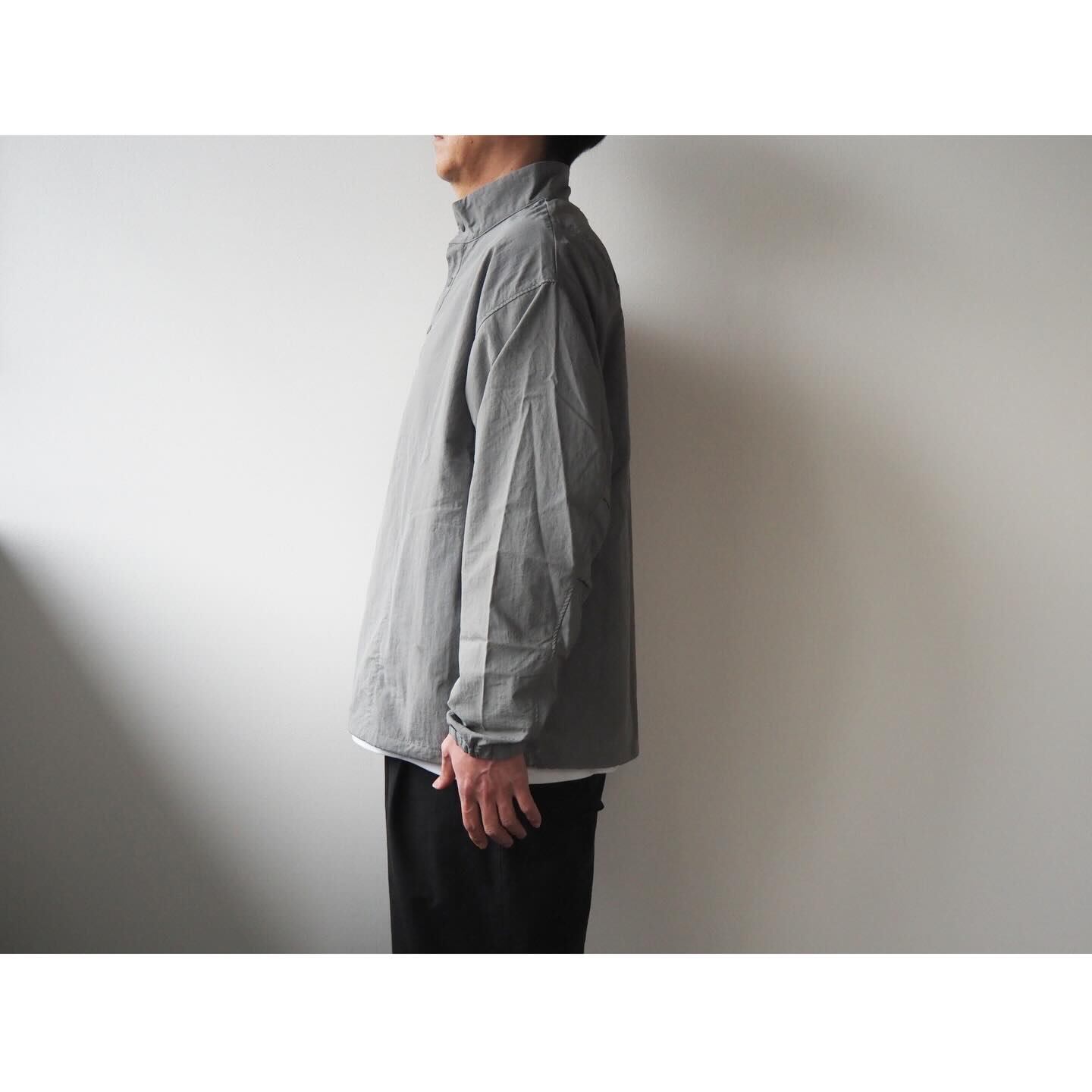サイズバランスは、プルオーバーのライトアウターらしく、肩幅と身幅を広めに設定したオーバーサイズシルエットです。