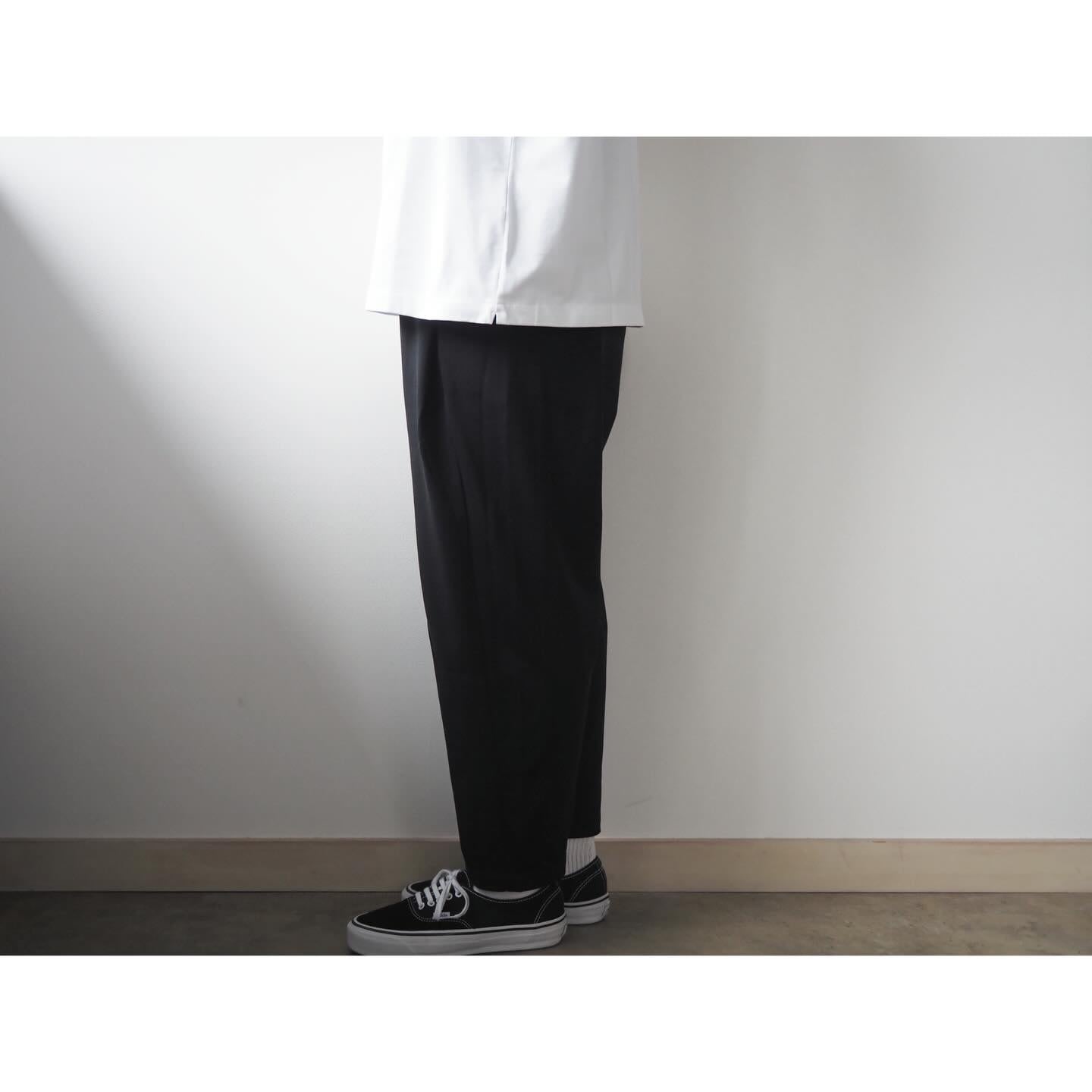 フロントには深めの1タックを入れ、ほど良いボリューム感のある中太テーパードシルエットに仕上げられています。