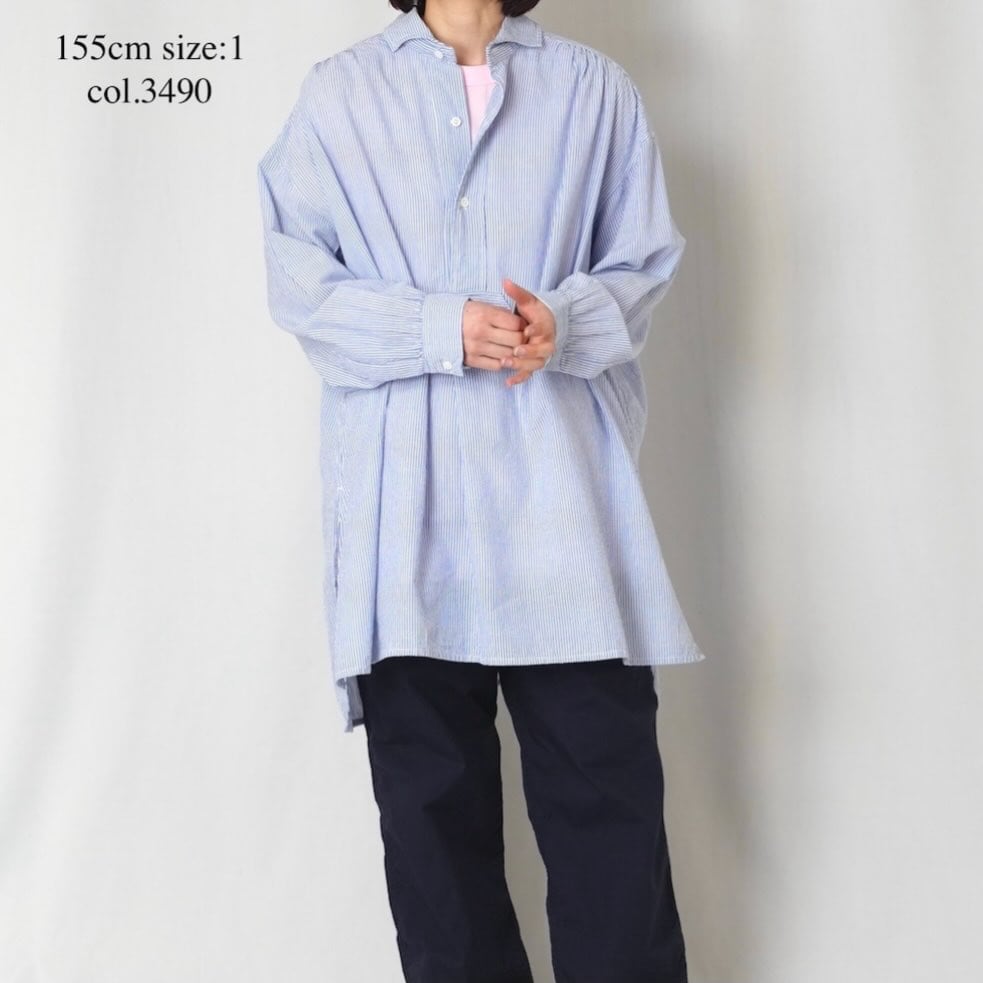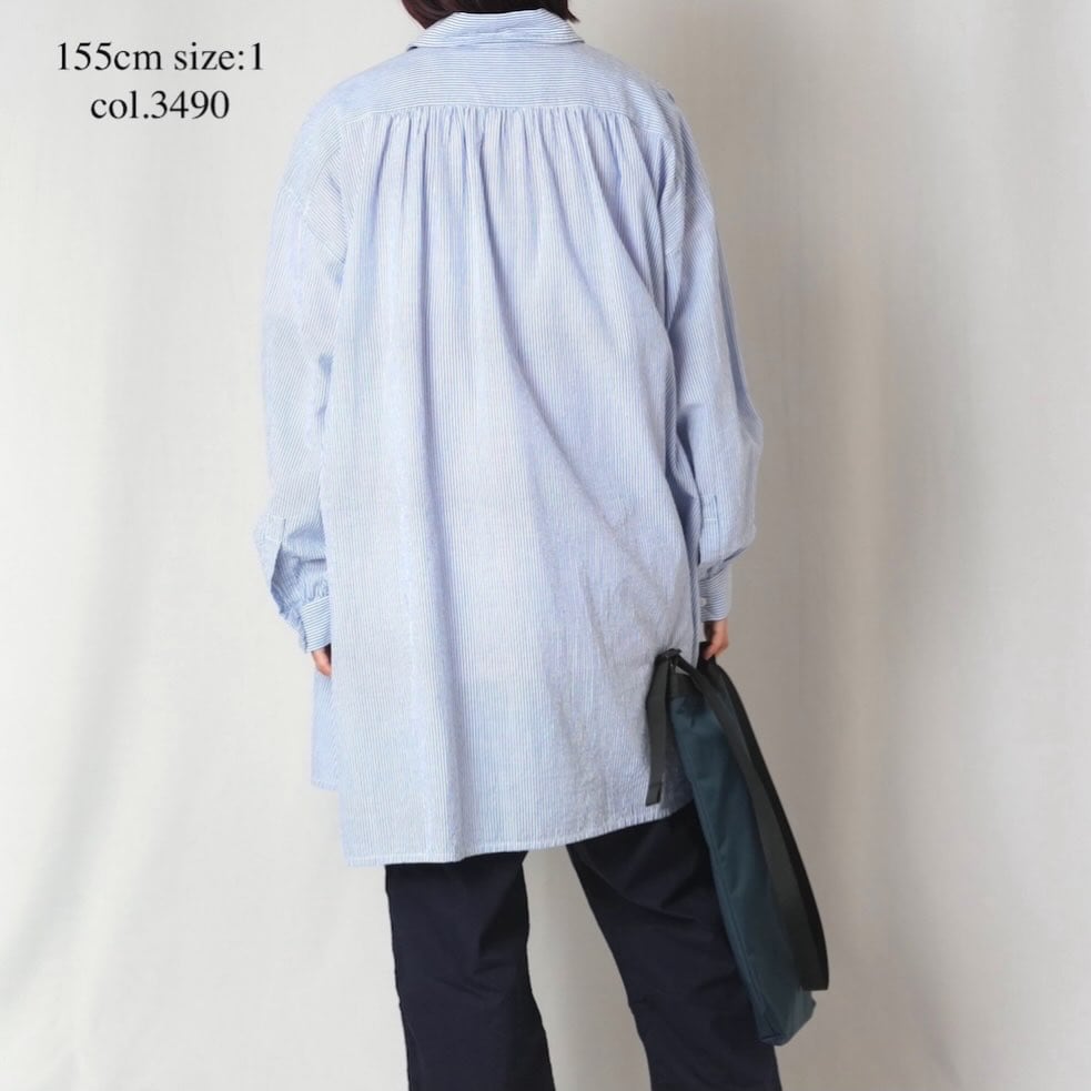 ARMEN(アーメン) Seersucker Stripe Wash Work Gathered Shirt