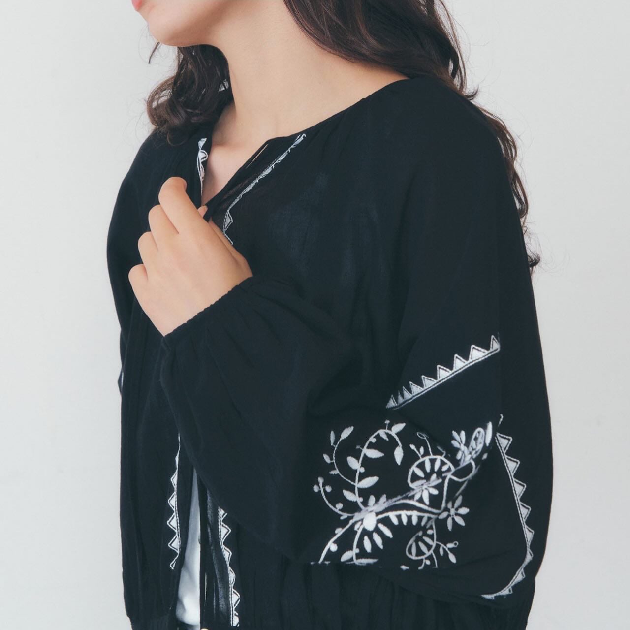 ブラックは、刺繍のコントラストが際立つ、シックで存在感のあるカラー。