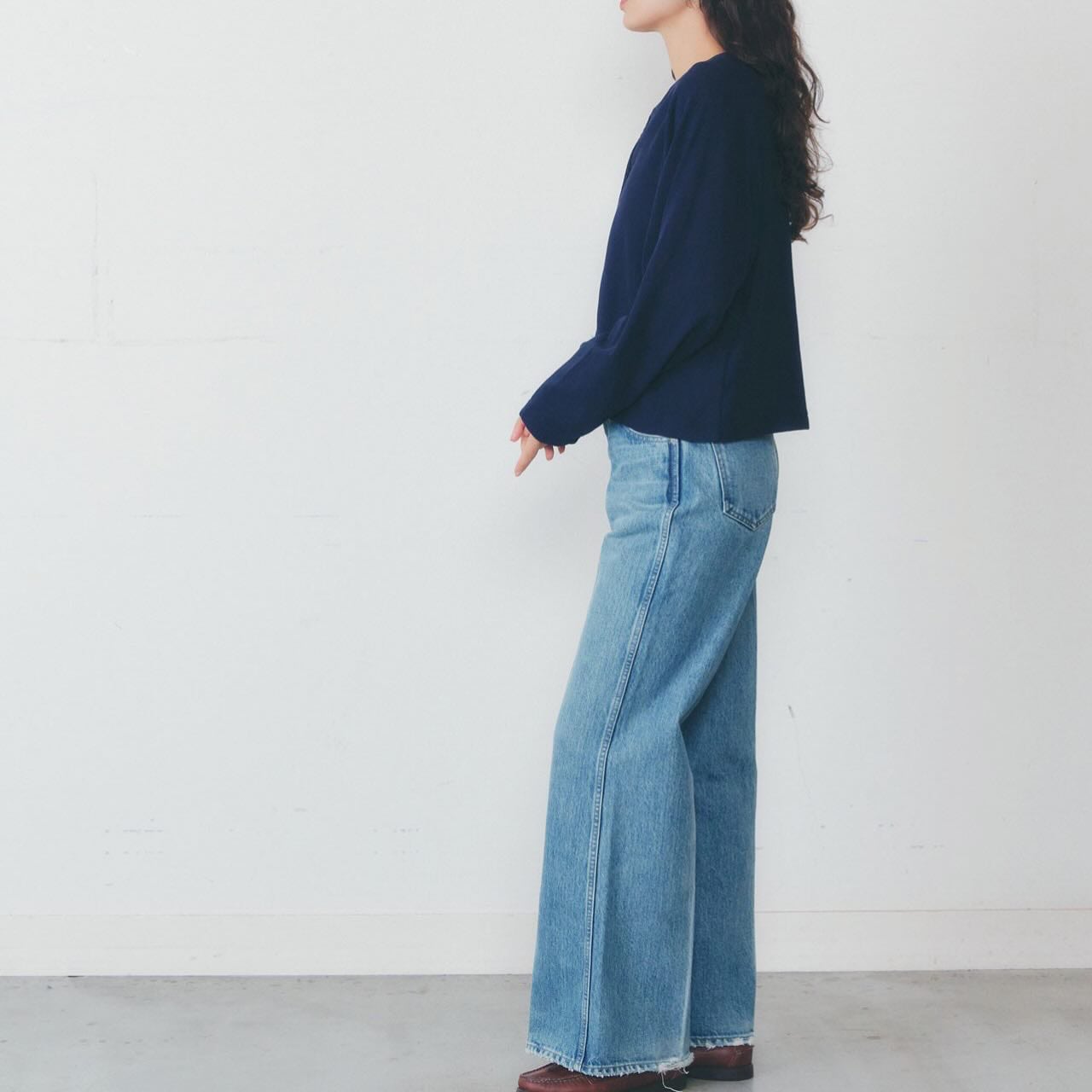 身幅にはほどよくゆとりを持たせつつ、すっきりとした着丈に仕上げることで、ルーズになりすぎないバランスの良いシルエットに。
