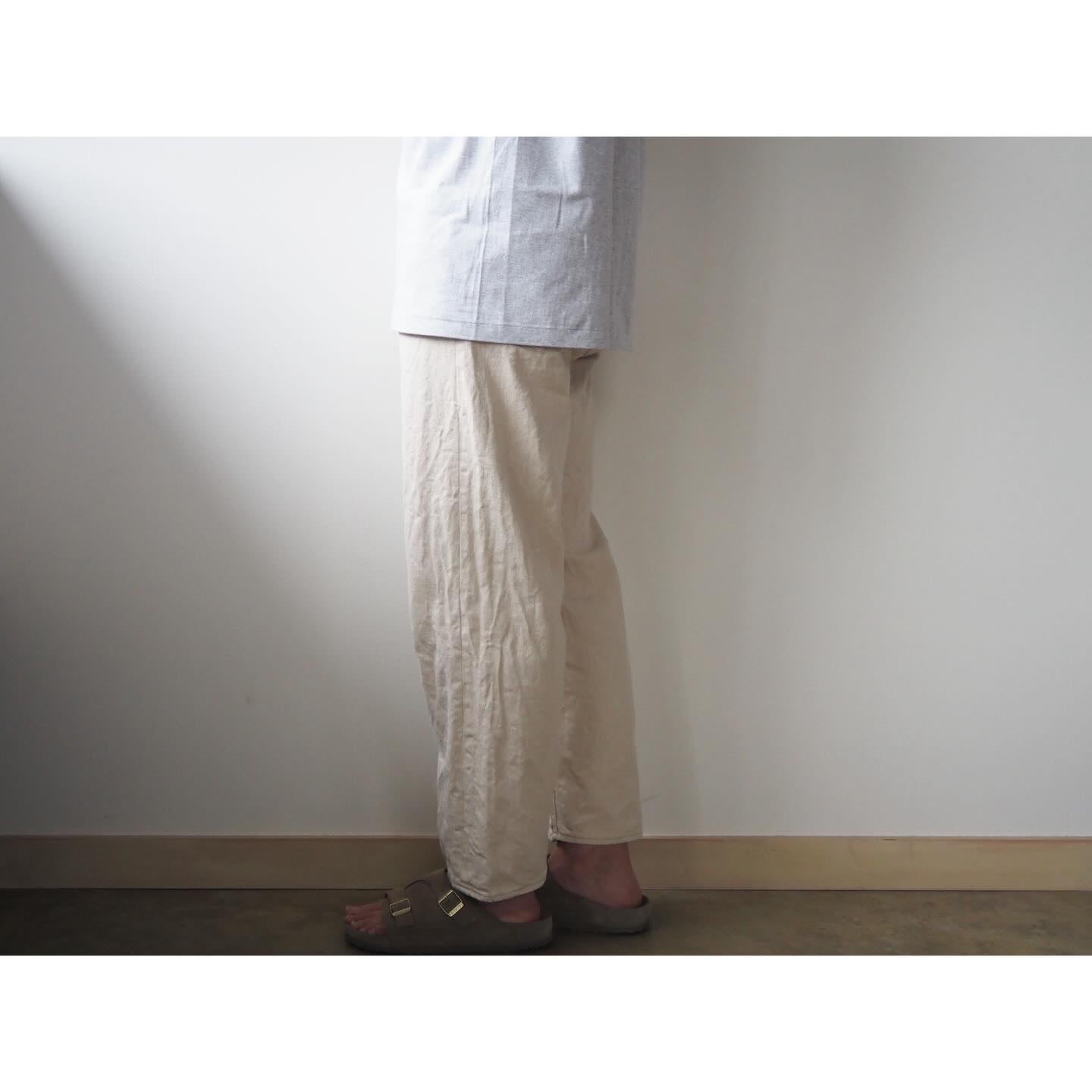 軽やかな穿き心地に加え、リネン特有のドライなタッチが肌に心地よく、気温の上がる季節にも快適に着用いただける素材感に仕上がっています。