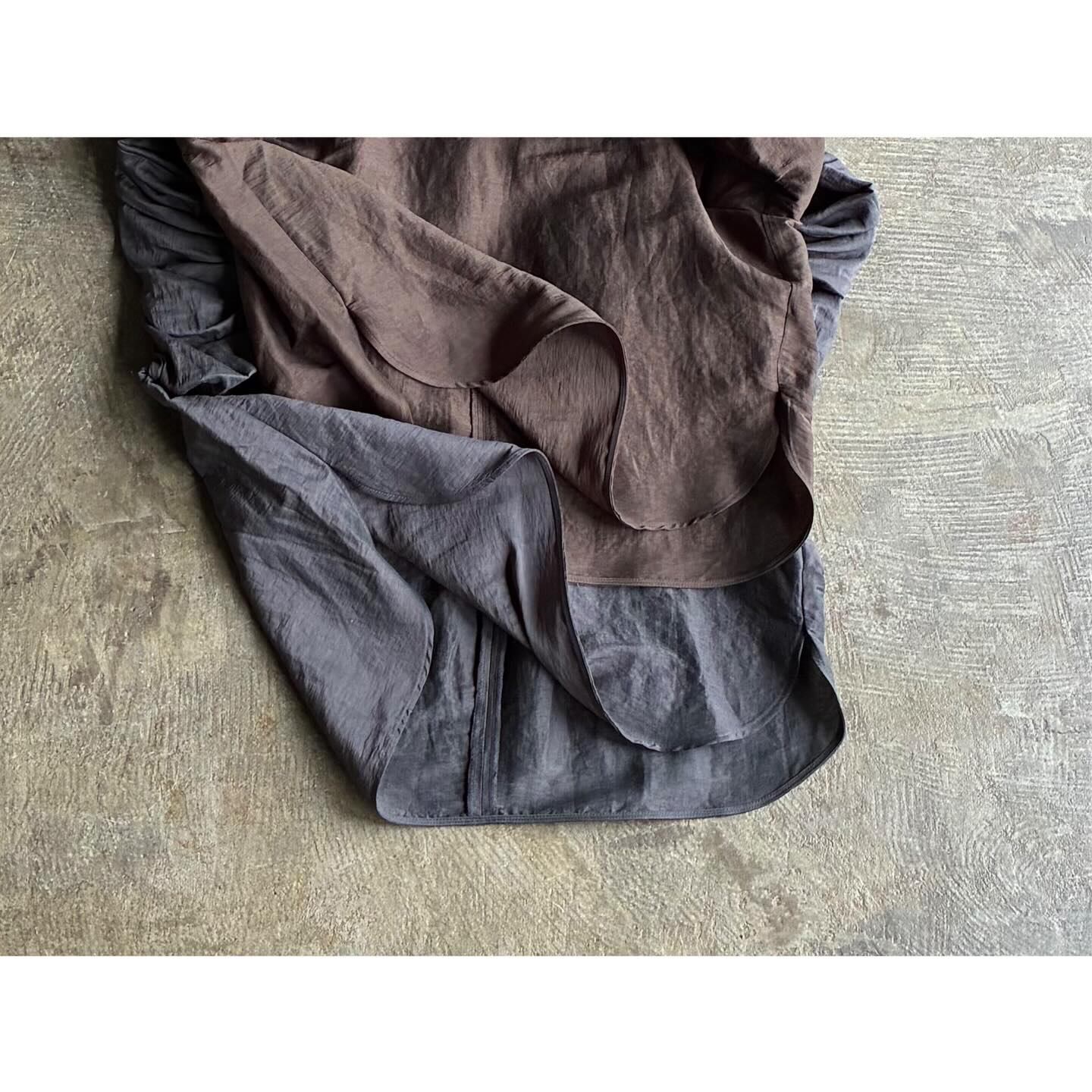 リネン特有のドライタッチやスラブ感を活かしながら、レーヨンの上品な光沢と落ち感を併せ持った、バランスの良い素材感に仕上げられています。