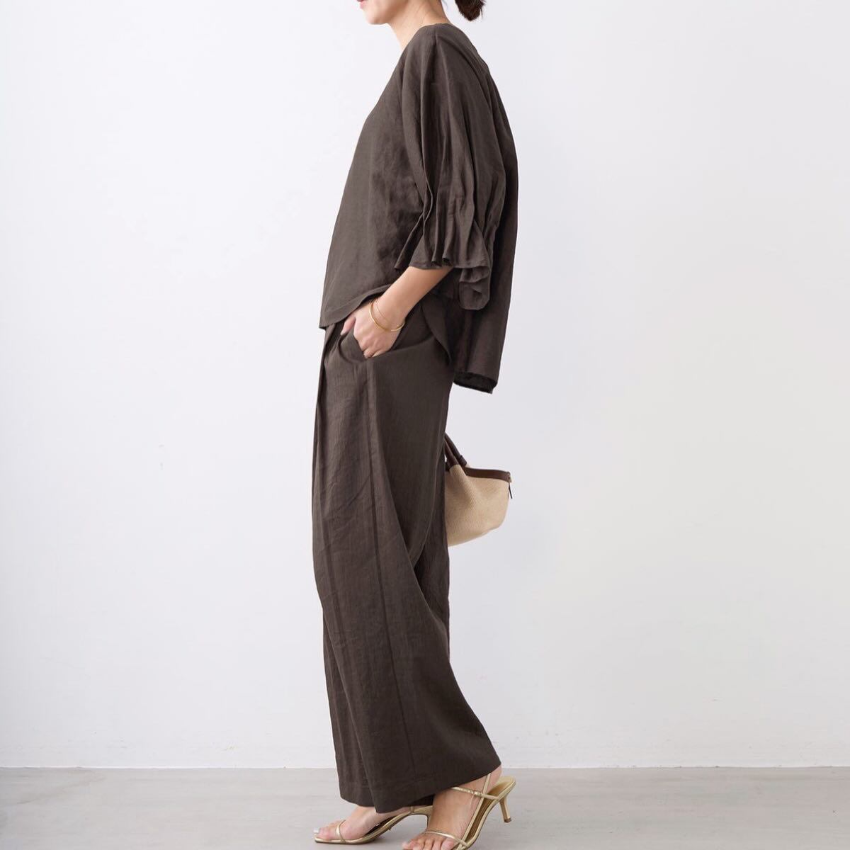 リネンならではのナチュラルなシャリ感と表情が、見た目にも涼やかな印象を与えてくれます。