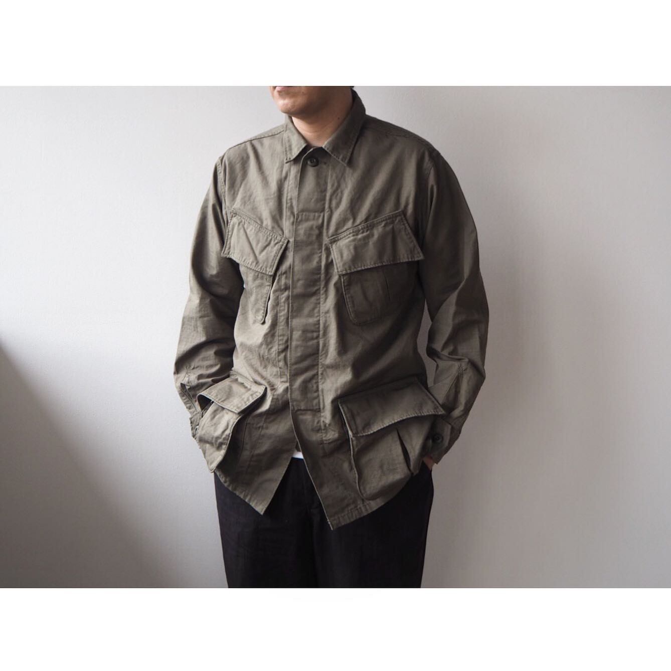 ベトナム戦争で採用された通称ジャングルファティーグジャケットをベースにし、前面には特徴的な形状をした大きなポケットが4つを配置。