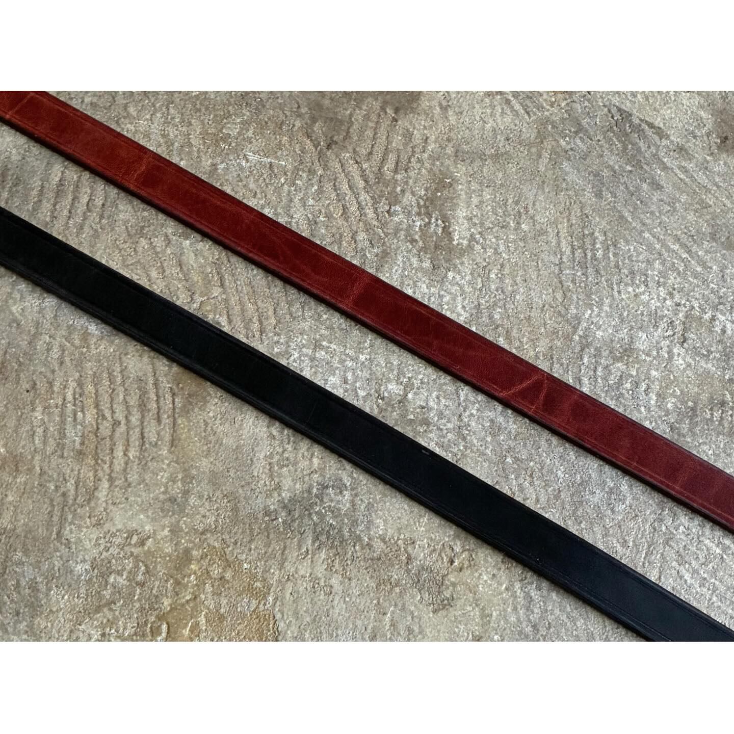 シンプルで様々なボトムスとの相性が良い20mm幅のレザーベルト。