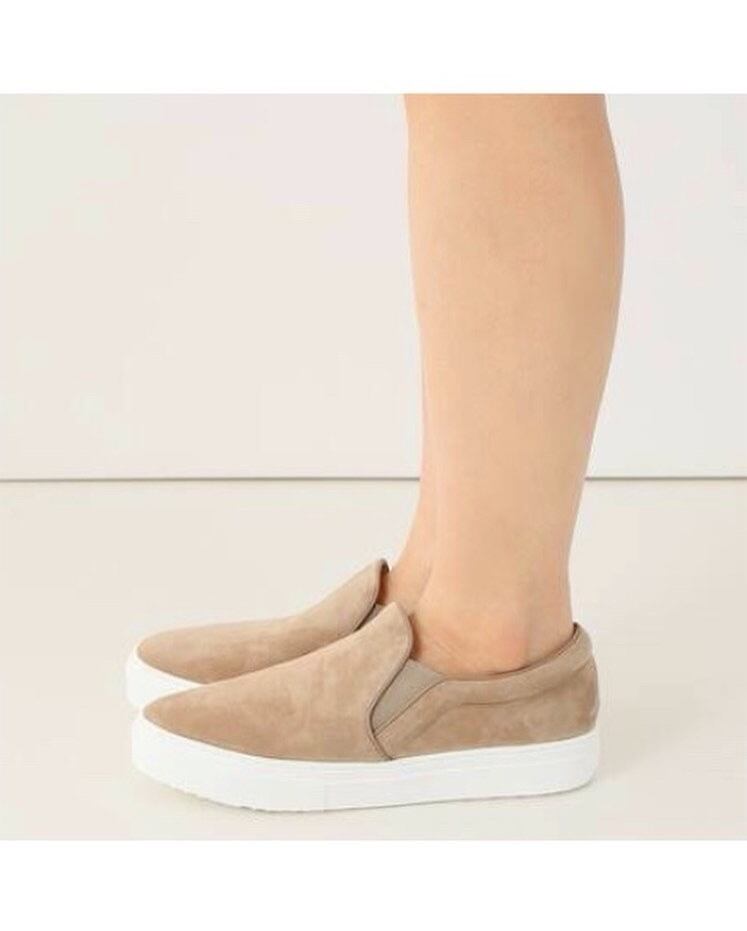 こちらは柔らかなベージュカラーのスエードが、品の良い雰囲気を演出してくれるスリッポン。