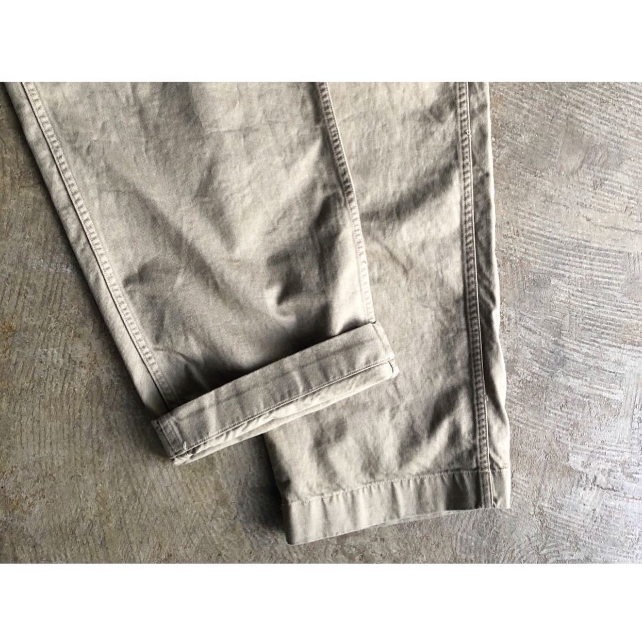 "orslow"M-52チノは、通常のデッドストックや古着では存在しないコットン100%で製作。