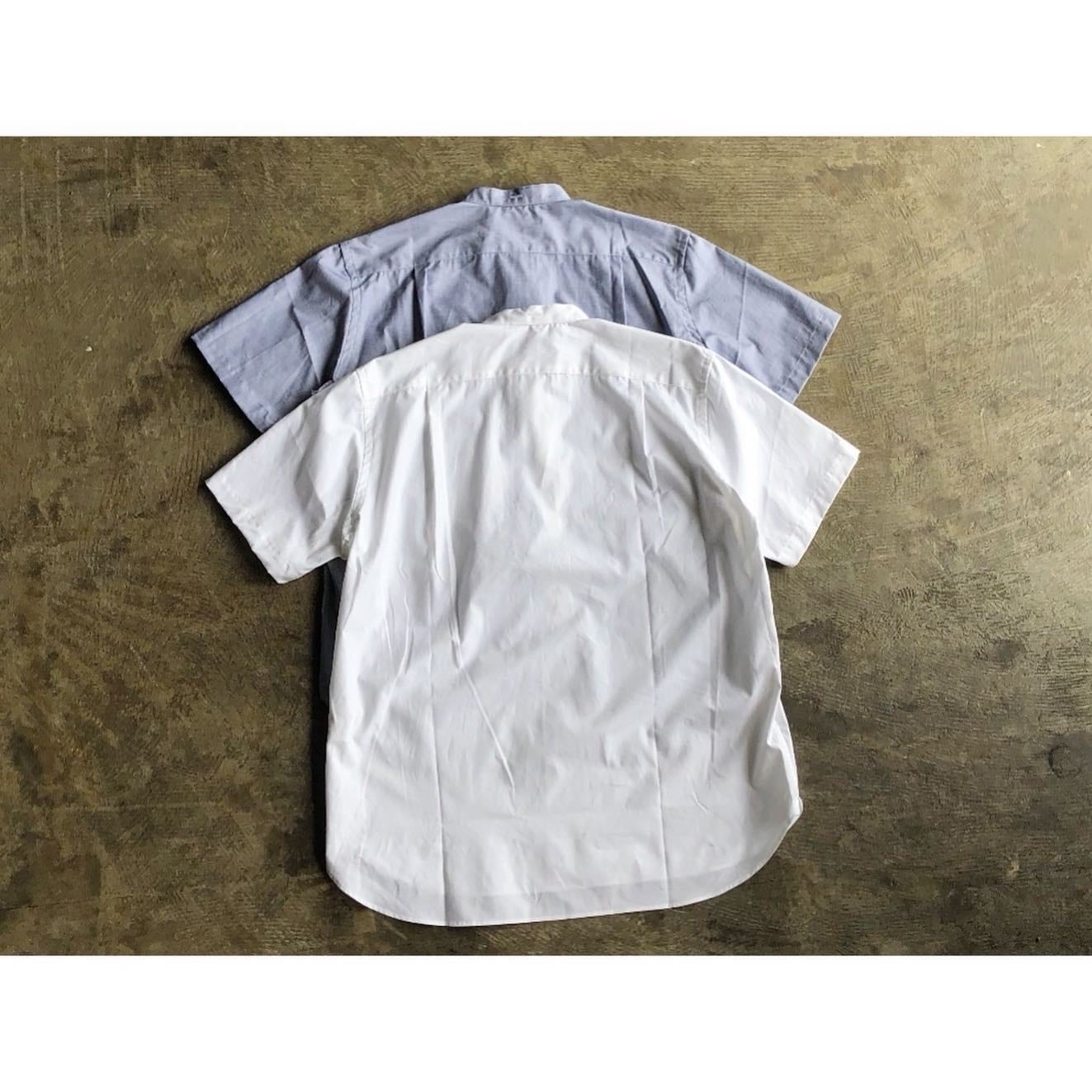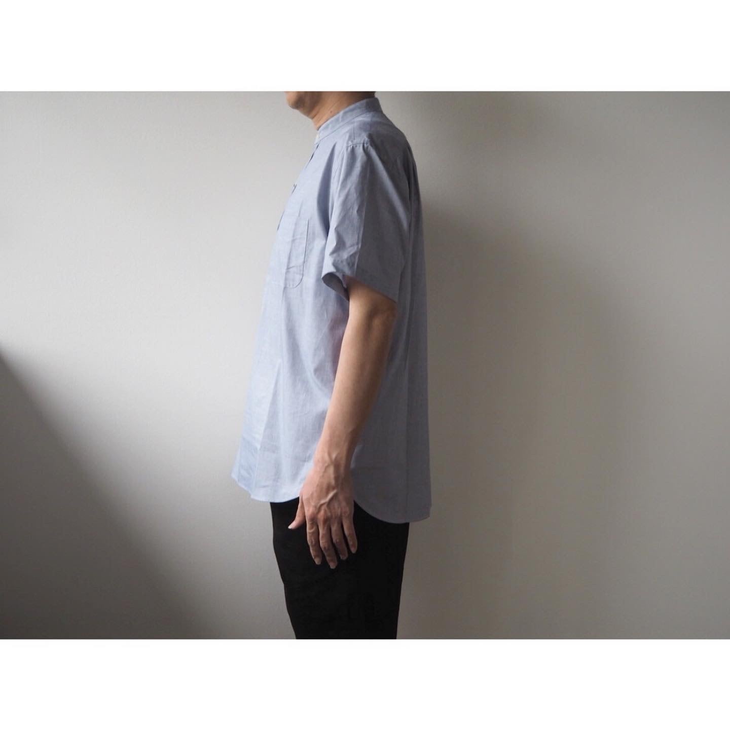 ベーシックなオフィサーシャツを、片野英児さんのディレクションによりモダンにアレンジさせ、シンプルで使い回しの効く半袖プルオーバーシャツに仕上がりました。