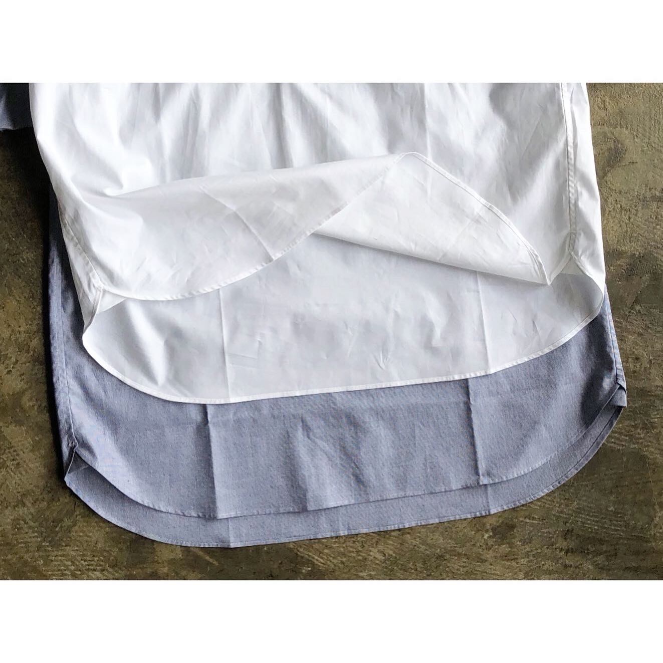 ホワイトは先染ブロード生地、ブルーは刷毛目生地を使用し、色によって風合いの異なる生地を採用しています。