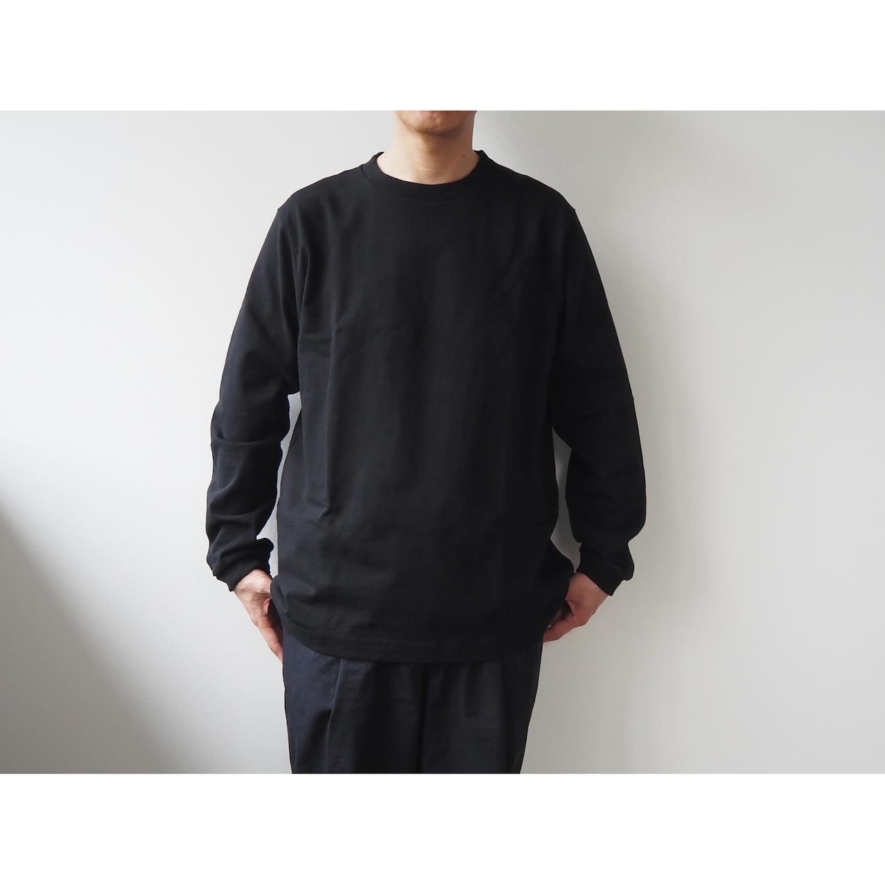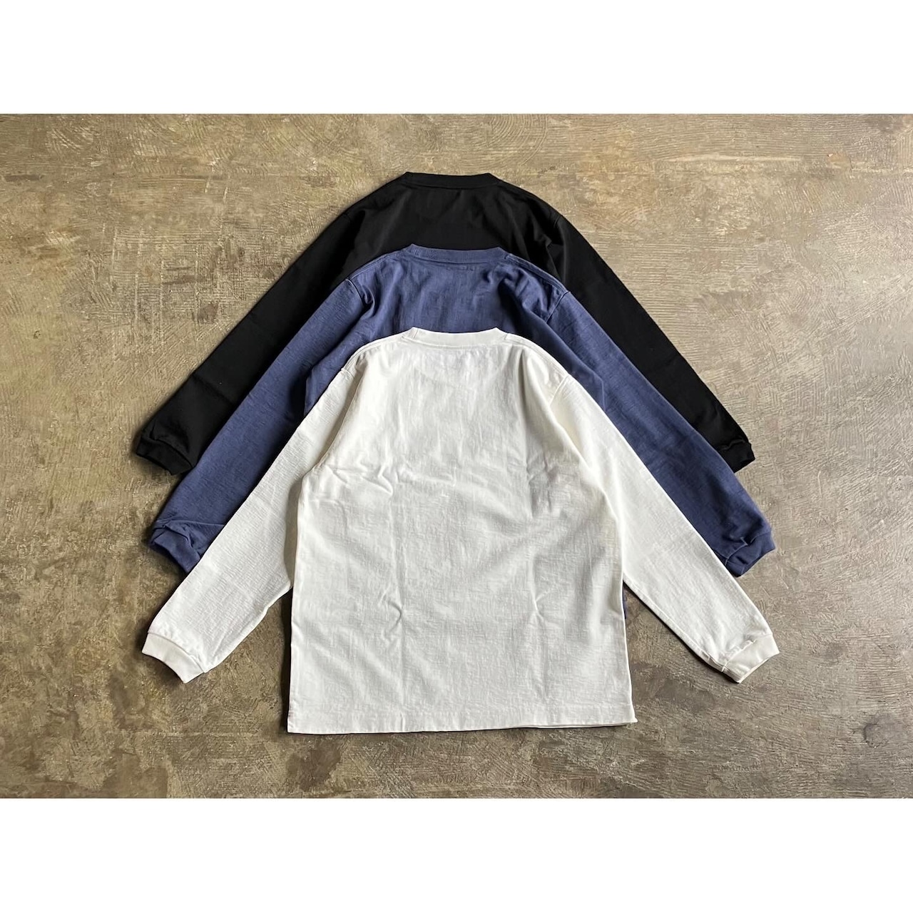 アメリカ産コットンを吊り編み機を使用し、極限まで度目を詰めて編み立てたドツメ天竺素材の長袖Tシャツ。
