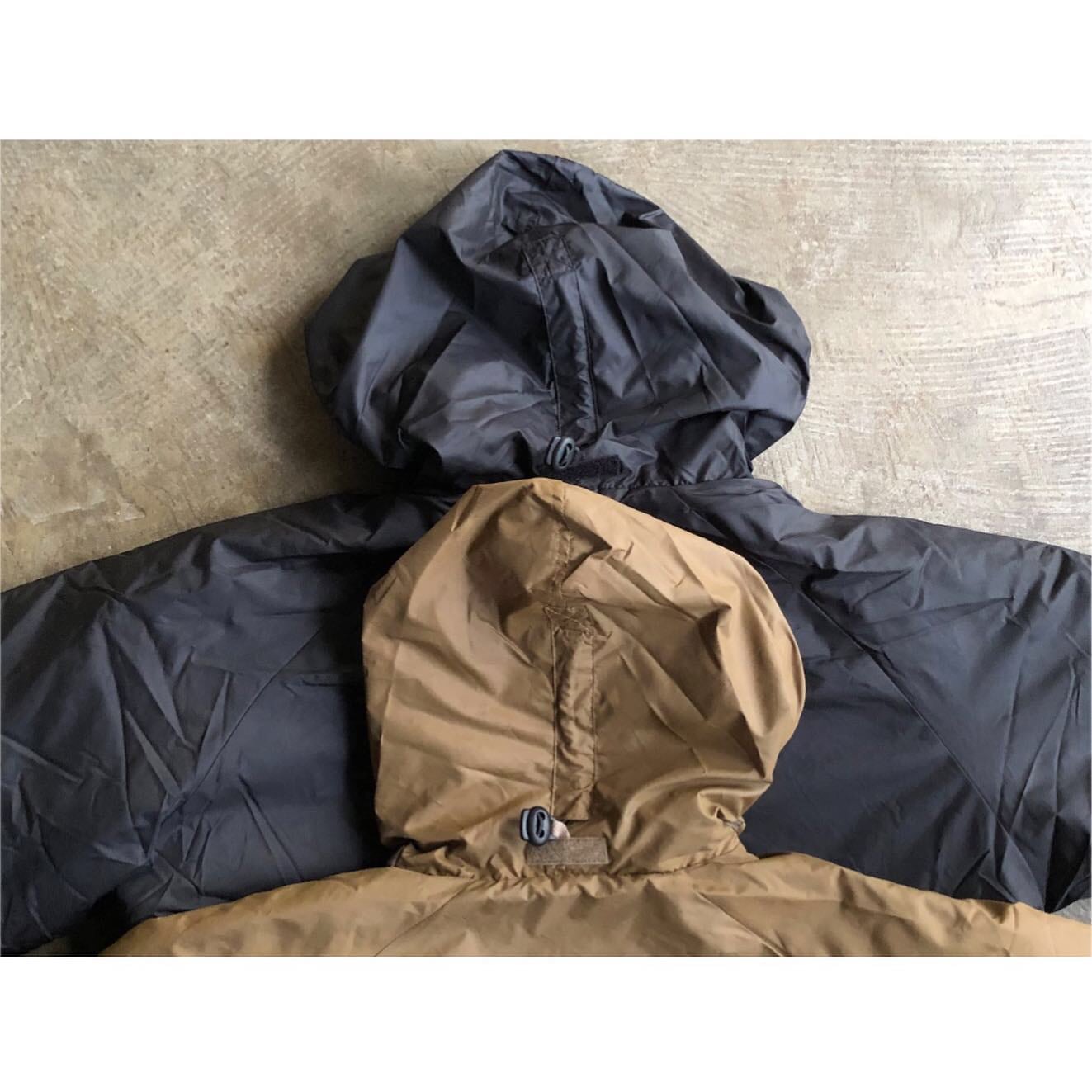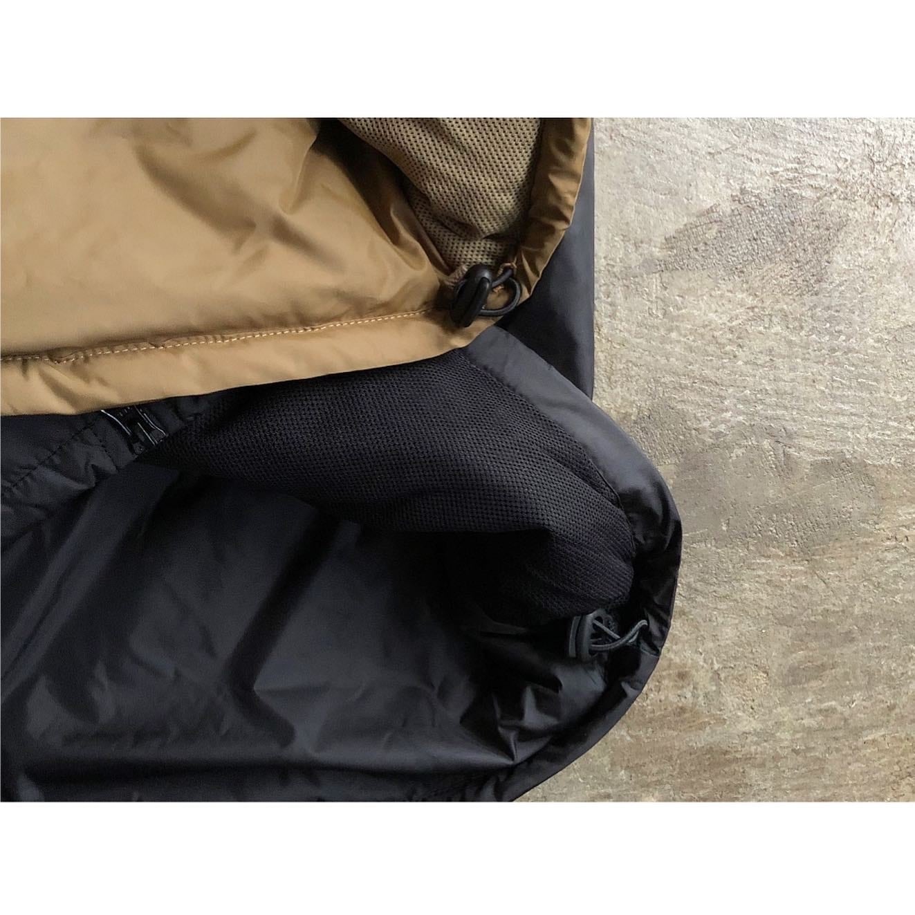 裾とフードにドローコードが付いてますので、絞って調整可能袖はゴムが入っており伸縮性がありますので、隙間風などもブロックしてくれます。