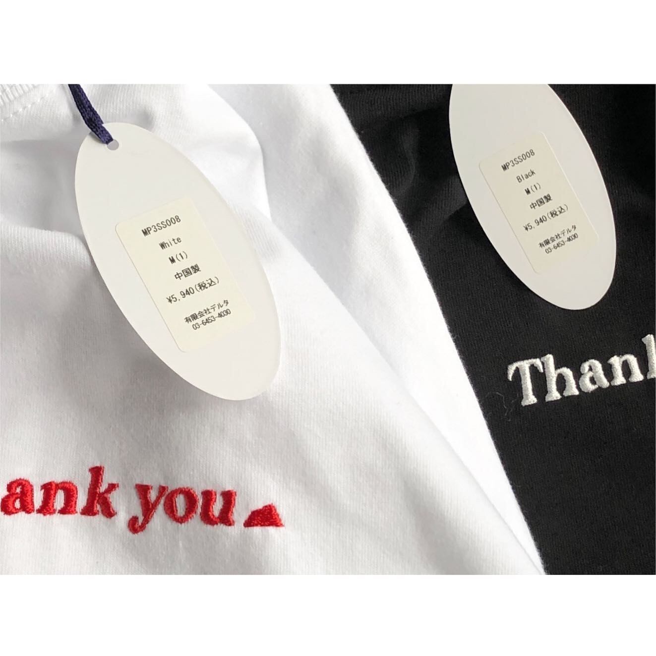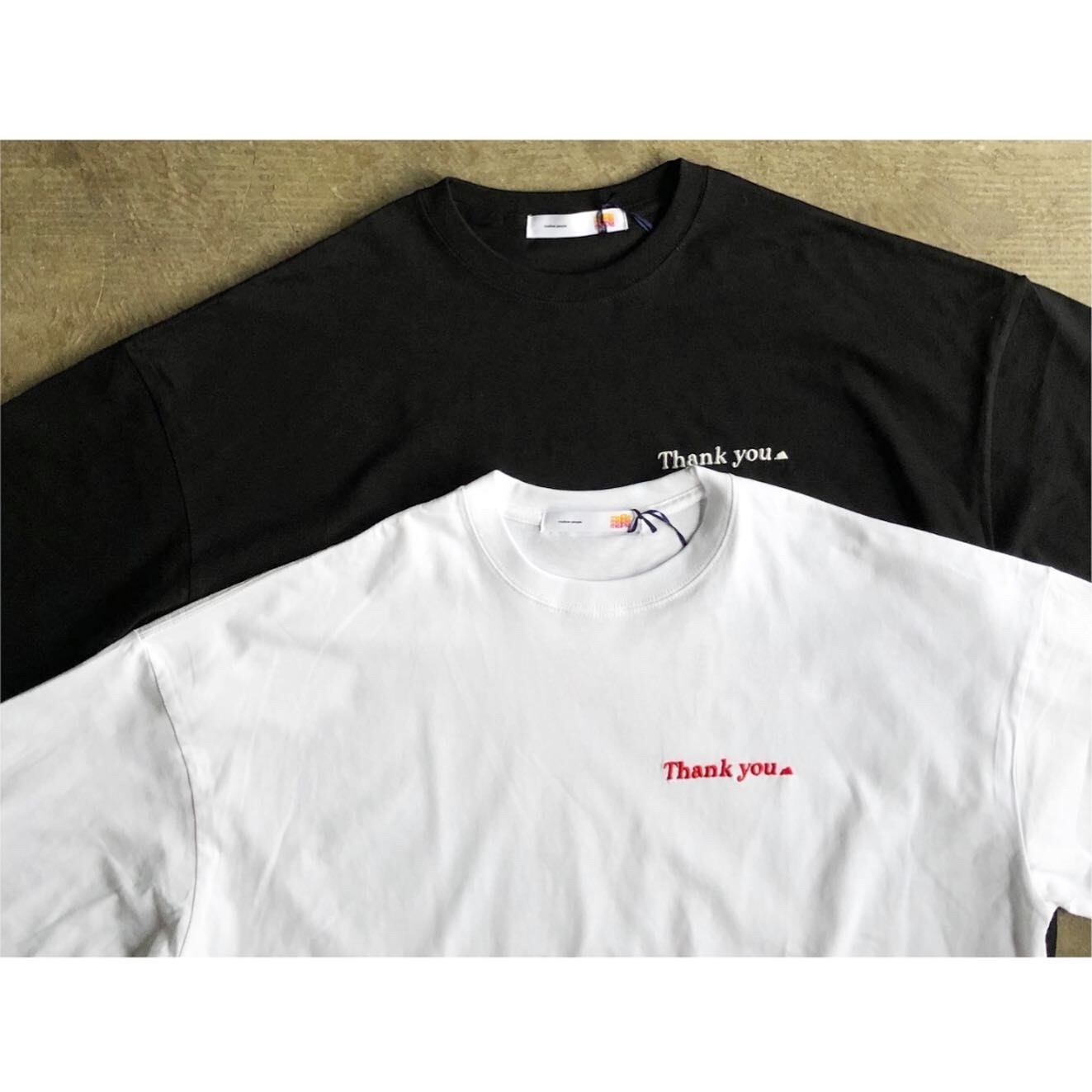左胸の「Thank you」のロゴは刺繍で仕上げています。