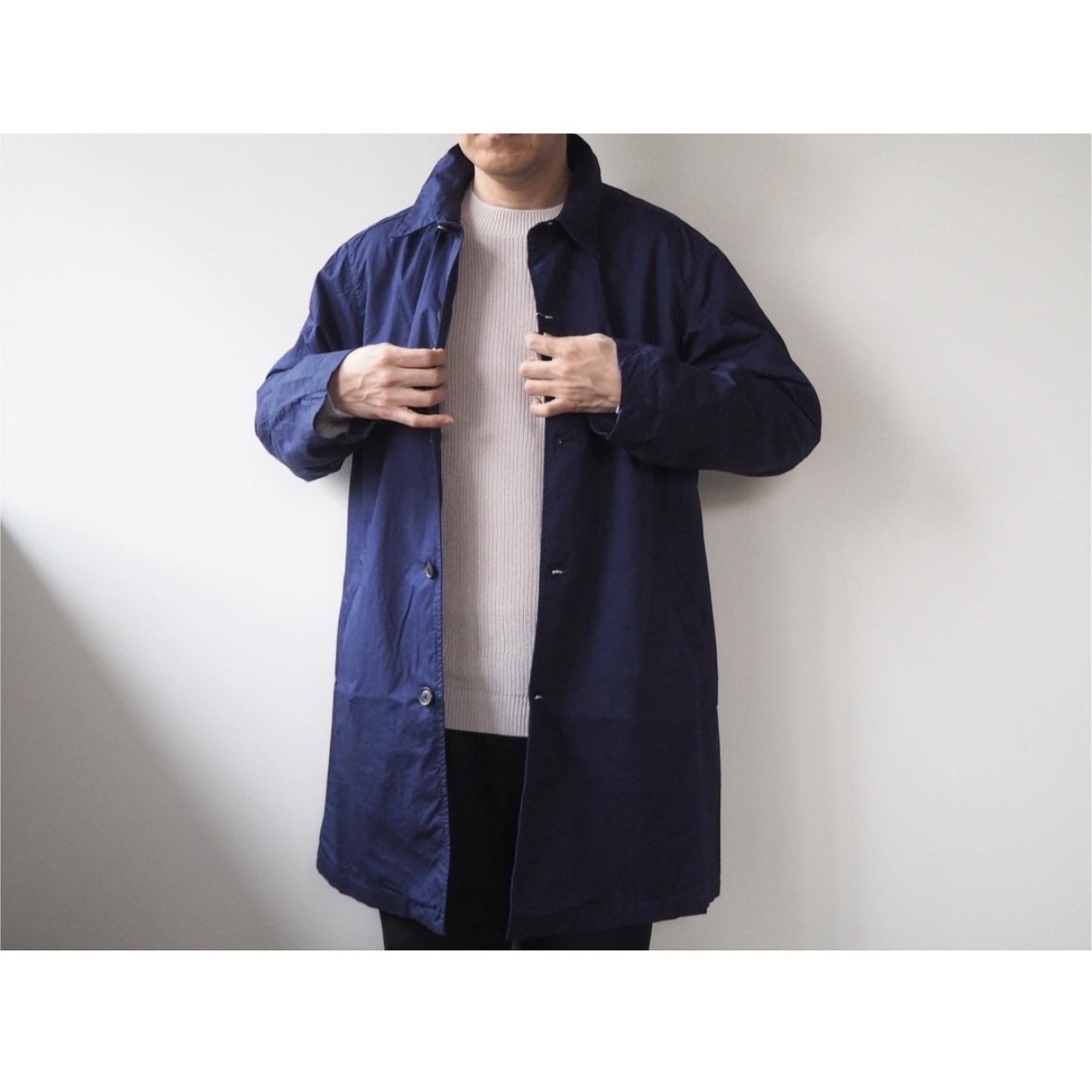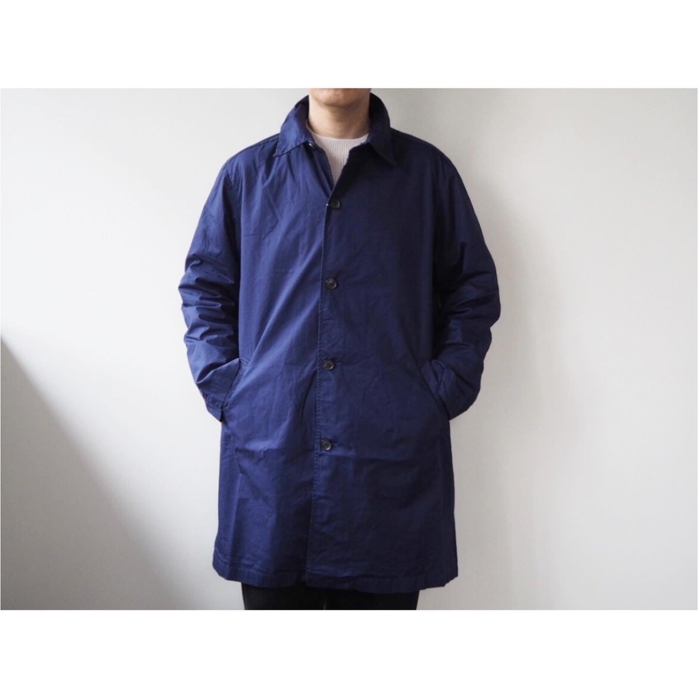 コンサバティブなスタイルながらシワ感のある素材感とオーバーダイの色合いによる独特な風合いが特徴の、シャツ感覚で羽織れる、"Manual Alphabet"ブランドを代表する薄手のコートアイテムです。