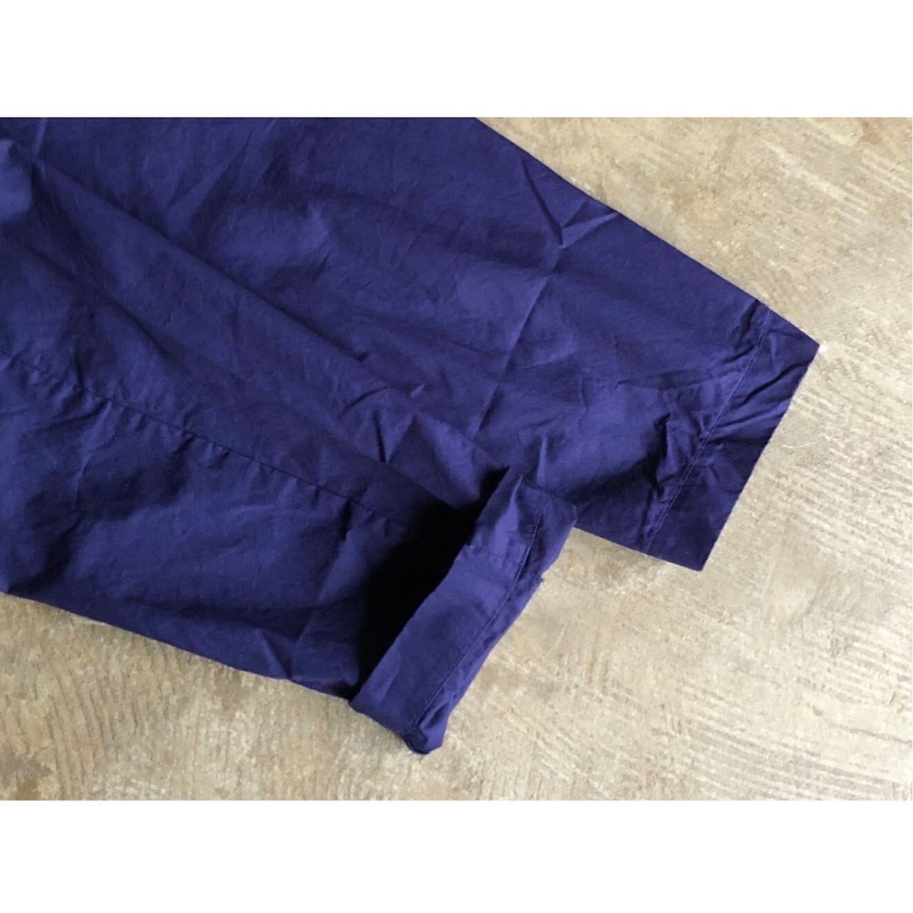 身巾に沿ったゆったりとしたアームホールから、袖を捲っての着用などシャツ感覚で羽織れるよう袖口はややゆったりとした巾の筒袖となっています。