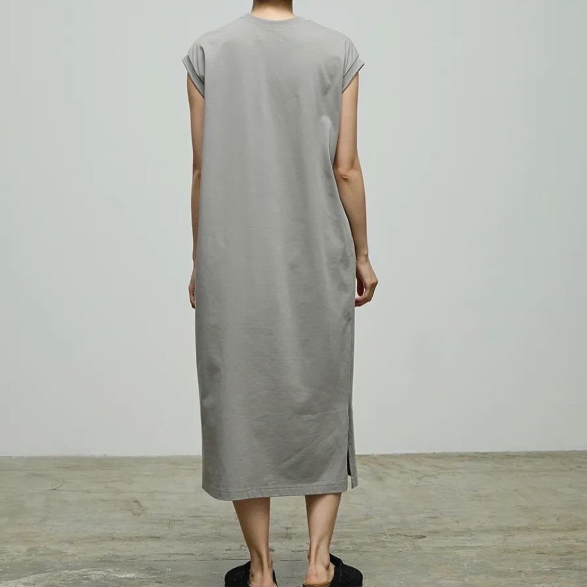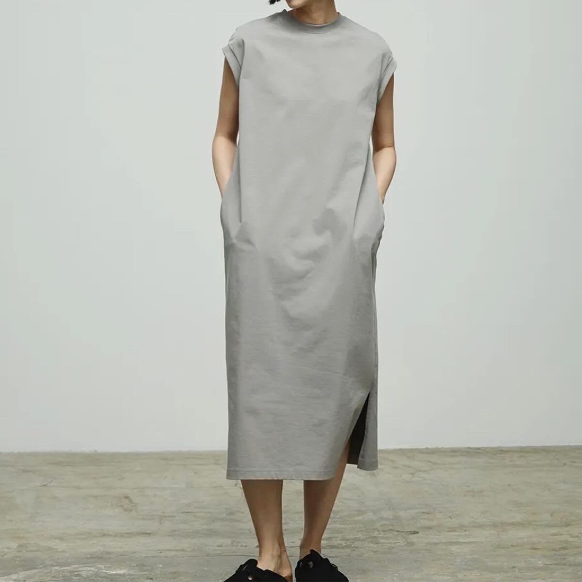 デザインは、シンプルなクルーネックのノースリーブワンピースタイプ。