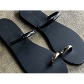 履くだけで抜け感のある上品さを演出してくれるフラットサンダル。