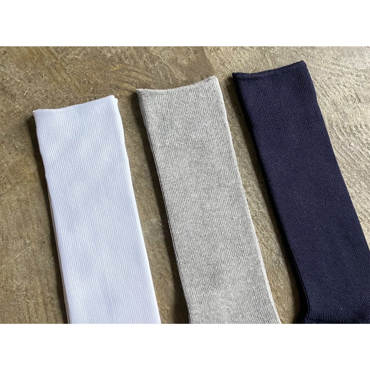 シャープな印象で、尚且つカジュアルに履ける薄手のリブソックスが作りたい!そんな思いで出来上がった、その名も『MILITARY SOCKS』。