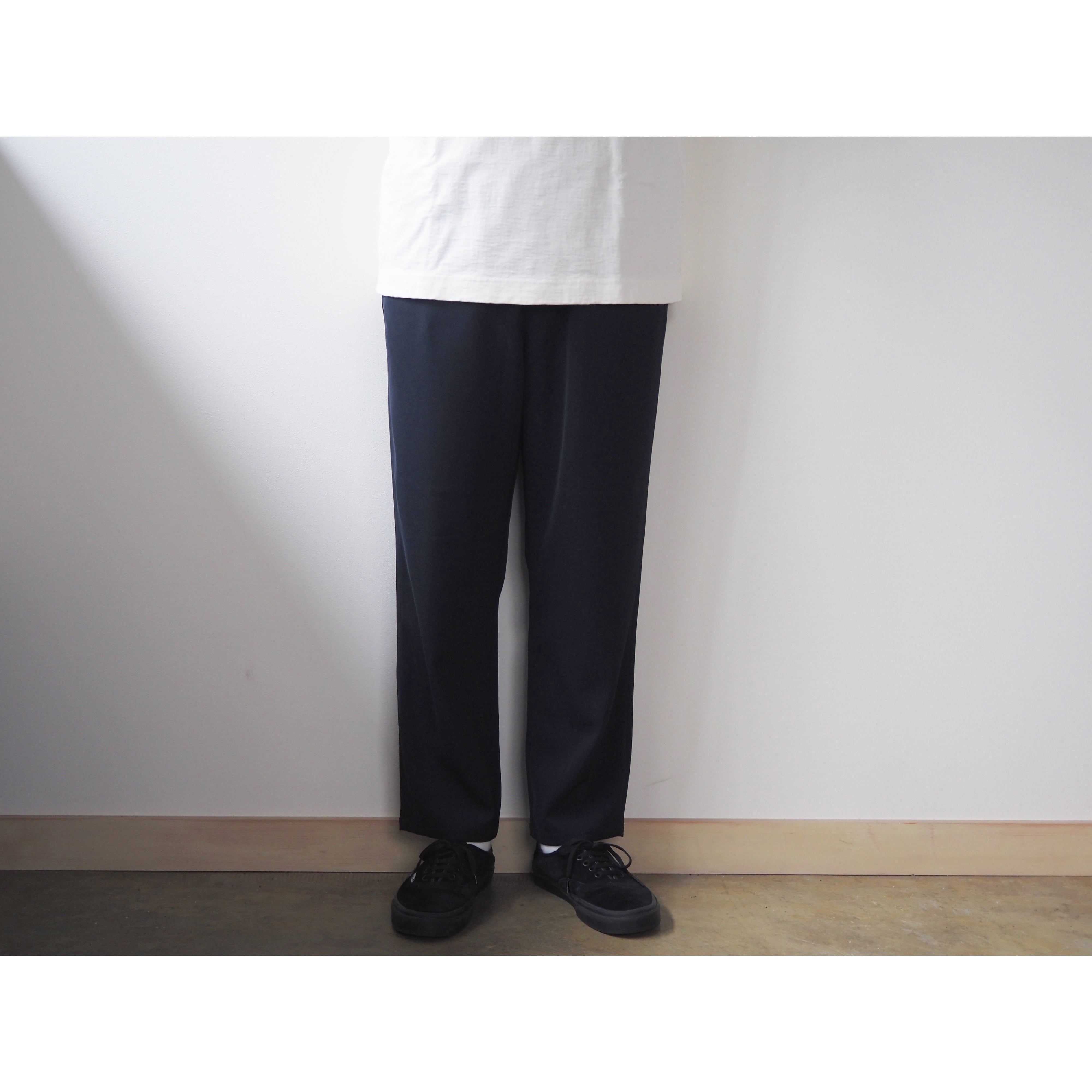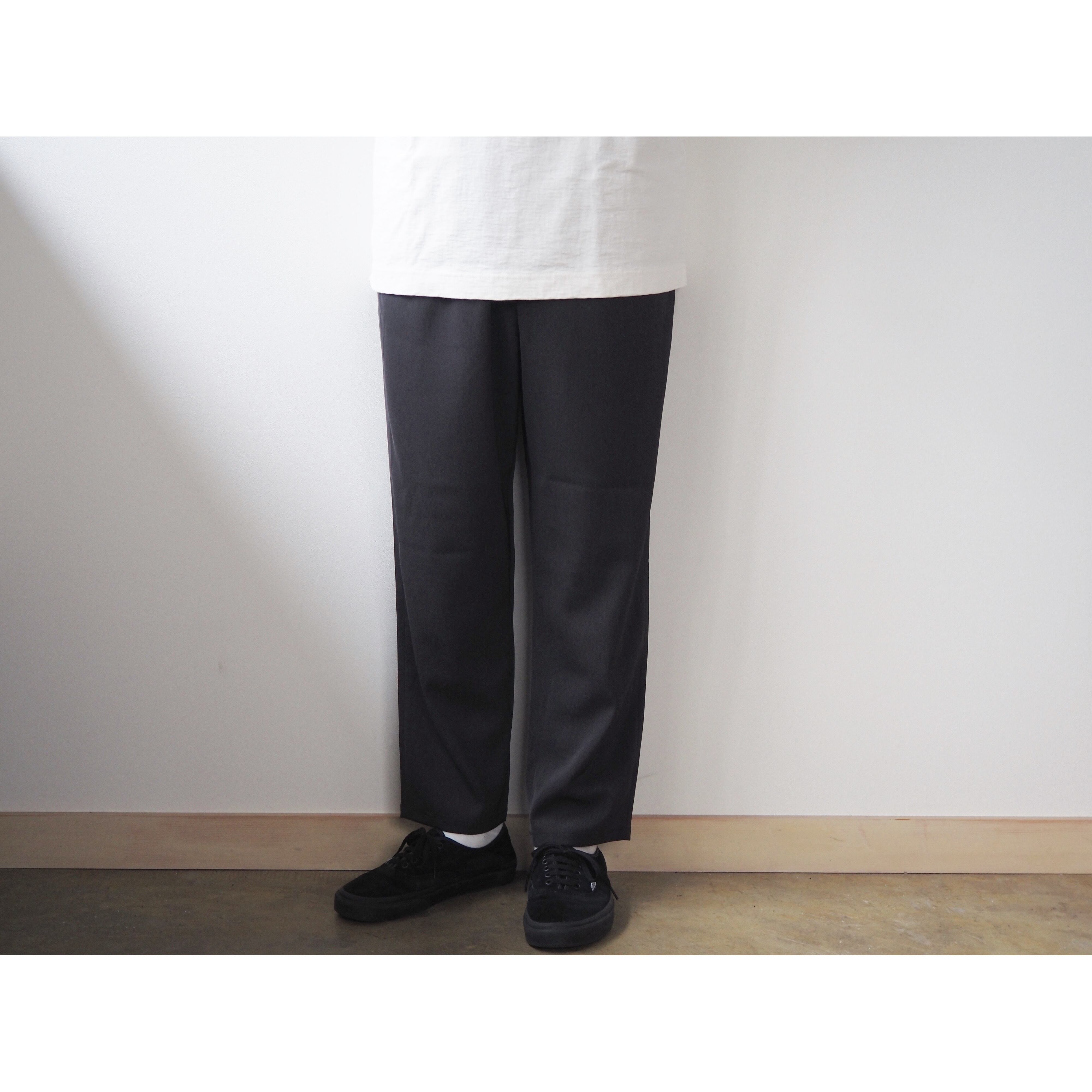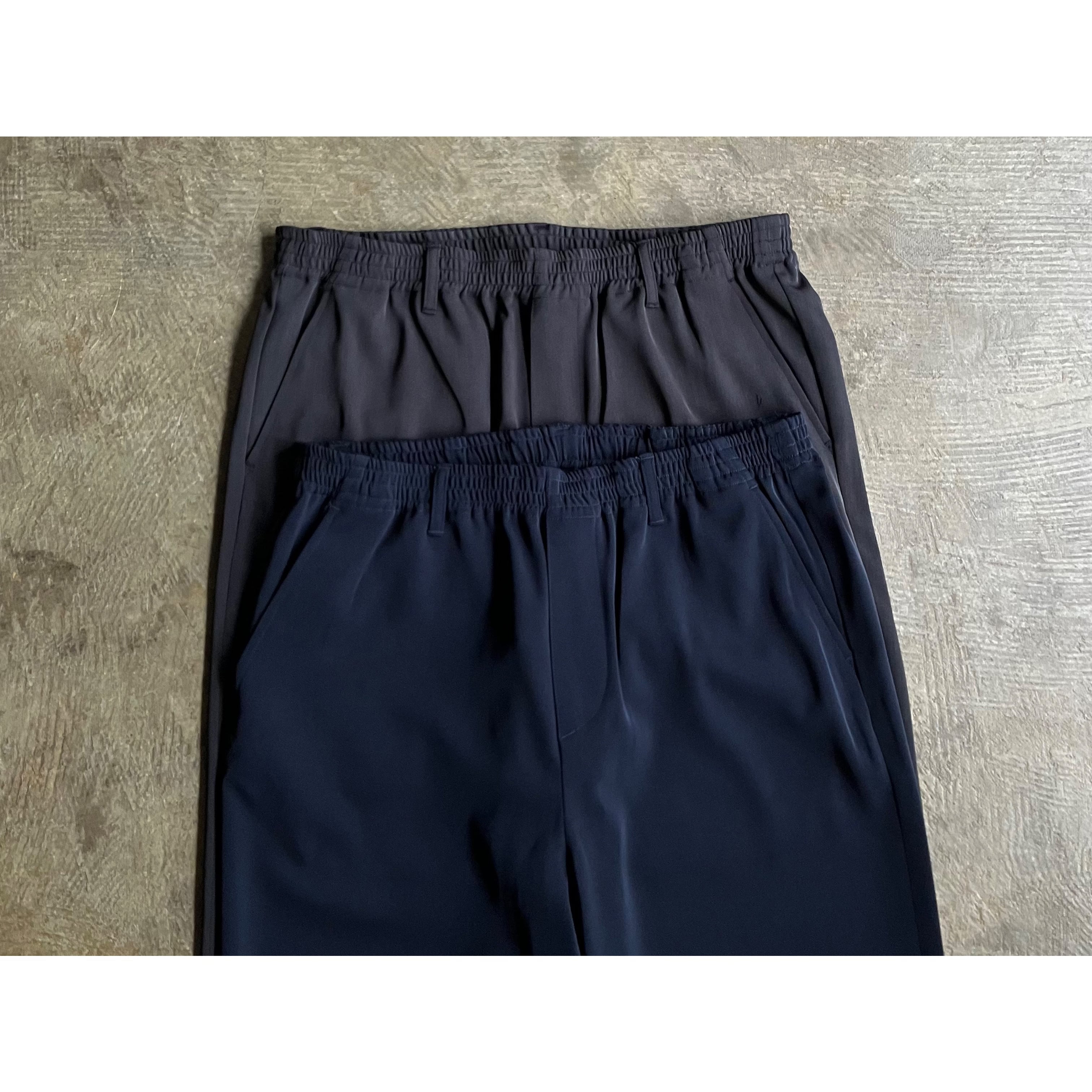 微光沢の生地とドレープが生み出される生地感によって、まるでウールのスラックスのような、適度なドレス感の雰囲気を醸し出してくれる1本。