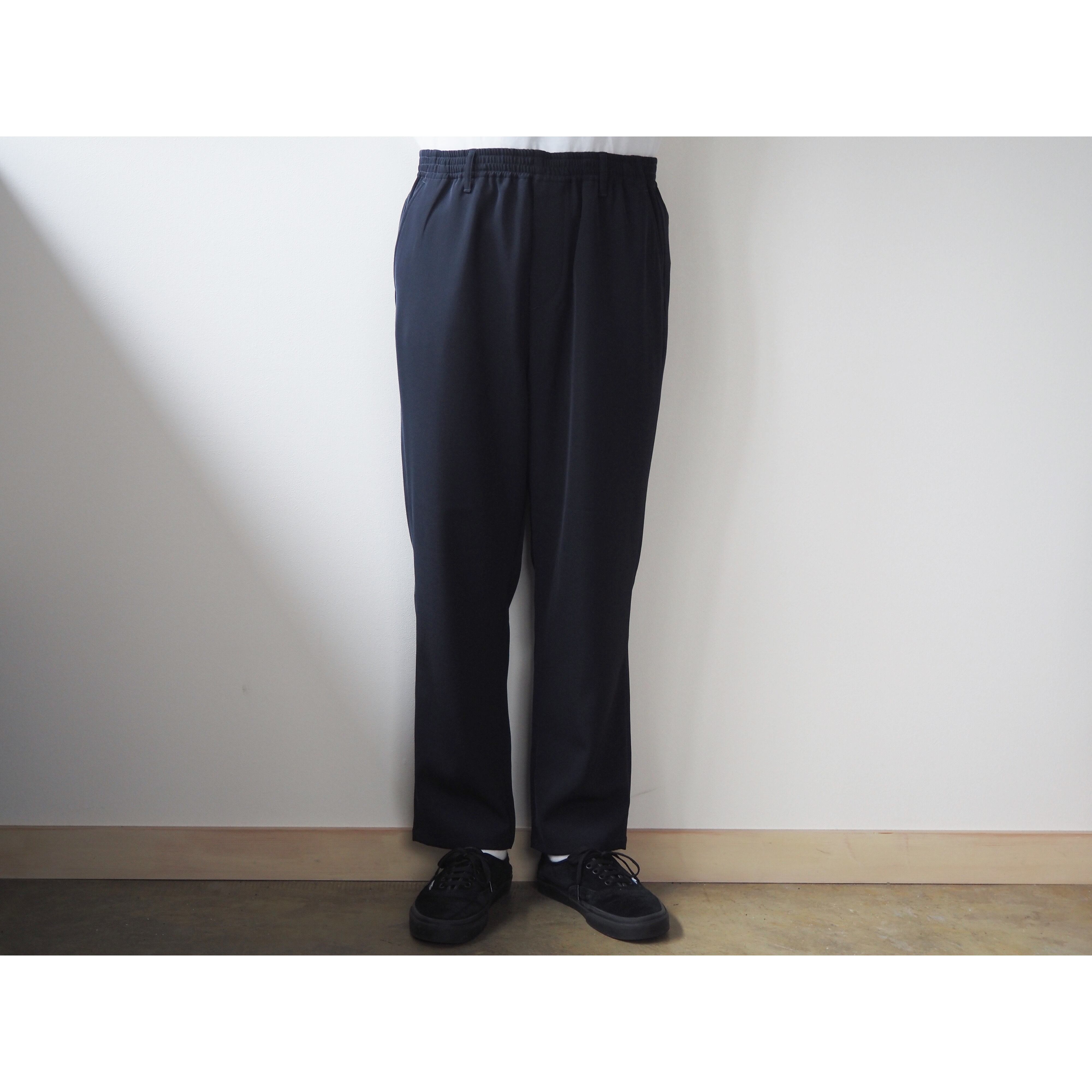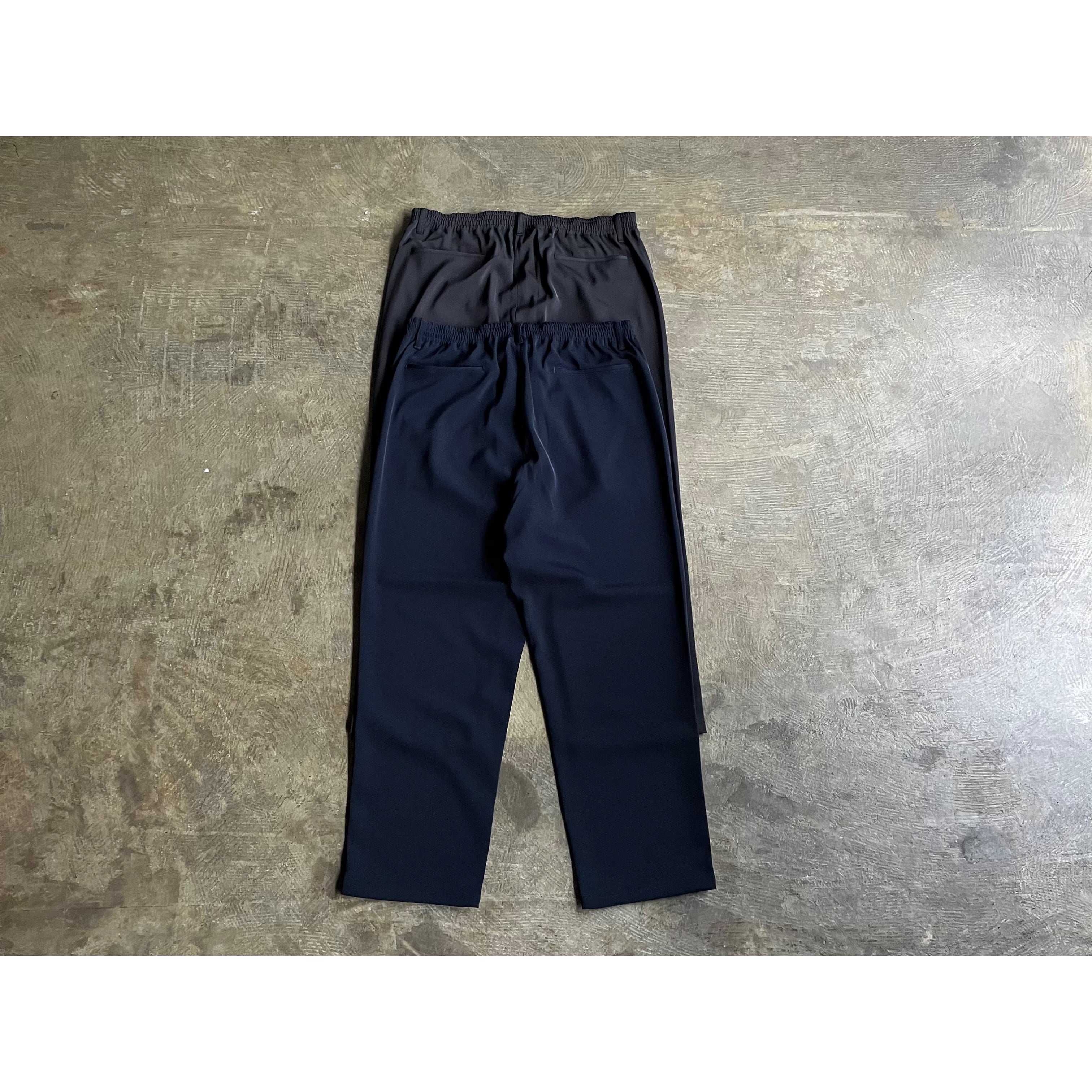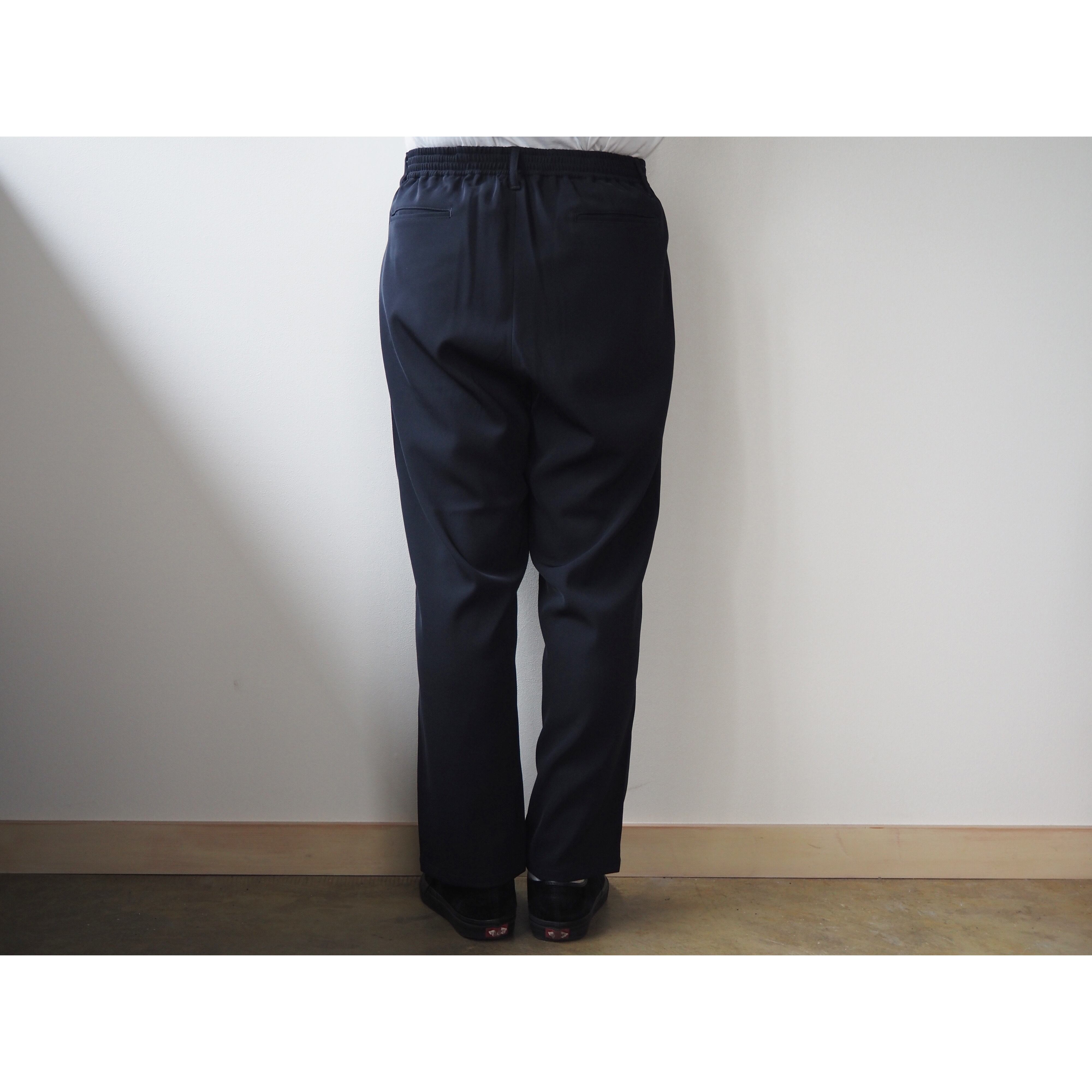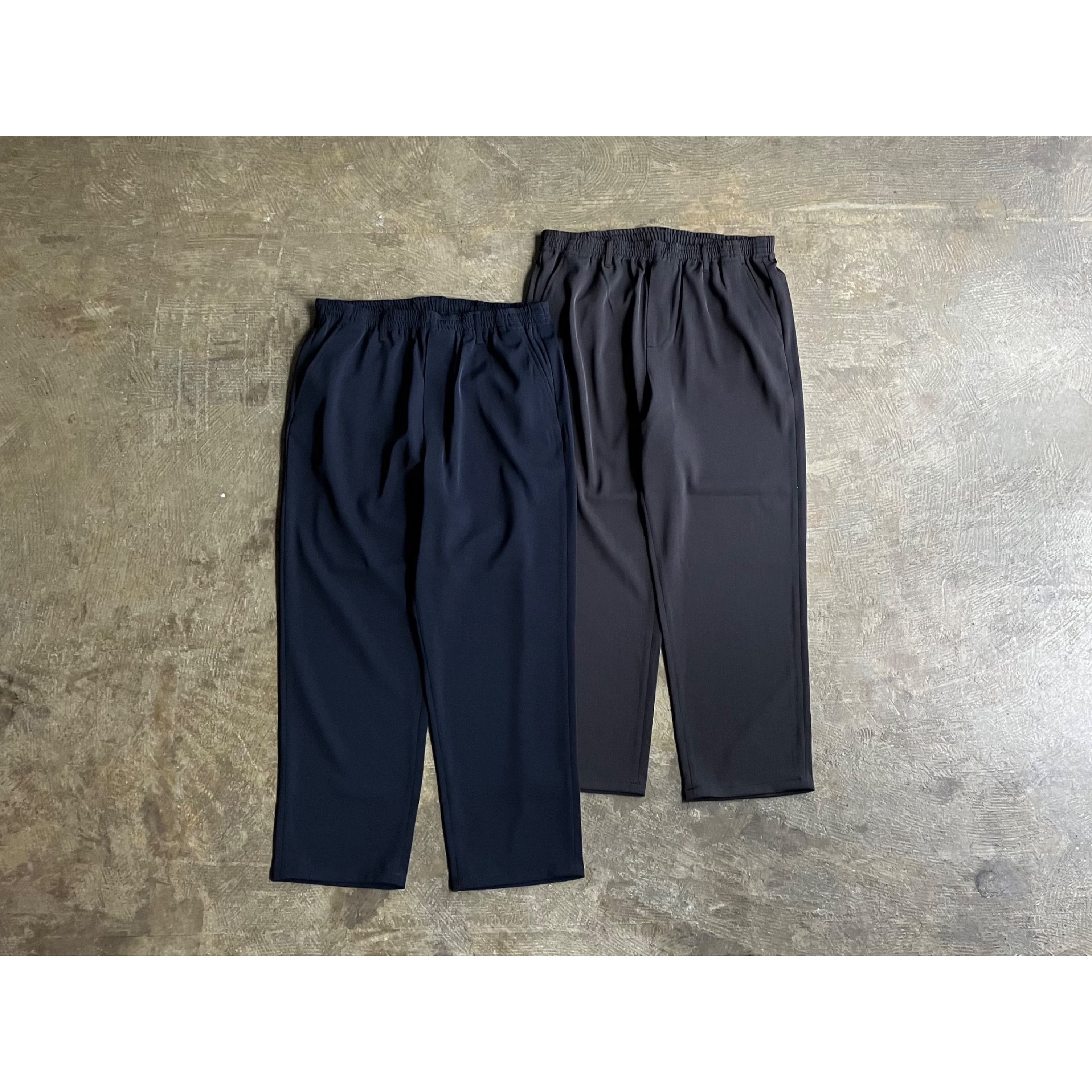 微光沢の生地とドレープが生み出される生地感によって、まるでウールのスラックスのような、適度なドレス感の雰囲気を醸し出してくれる1本。