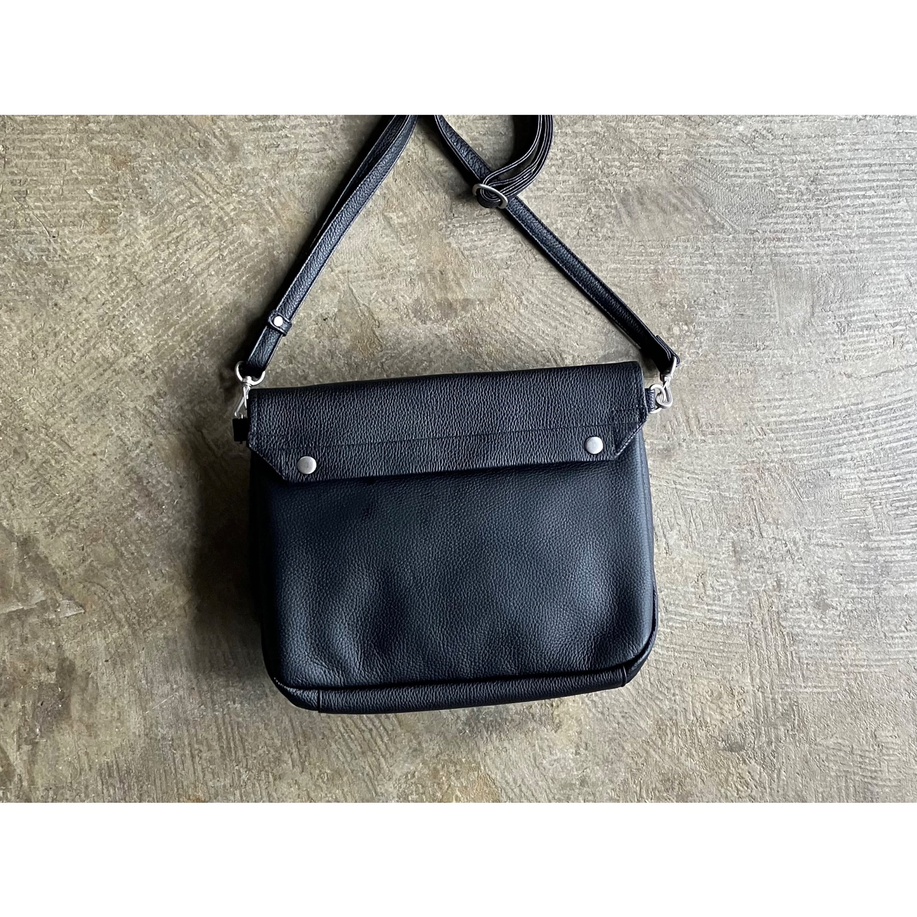 サイズ感はSサイズより一回り大きく、お財布、スマートフォン、鍵などに加え、一眼レフのデジカメぐらいも収納できる大きさとなっています。