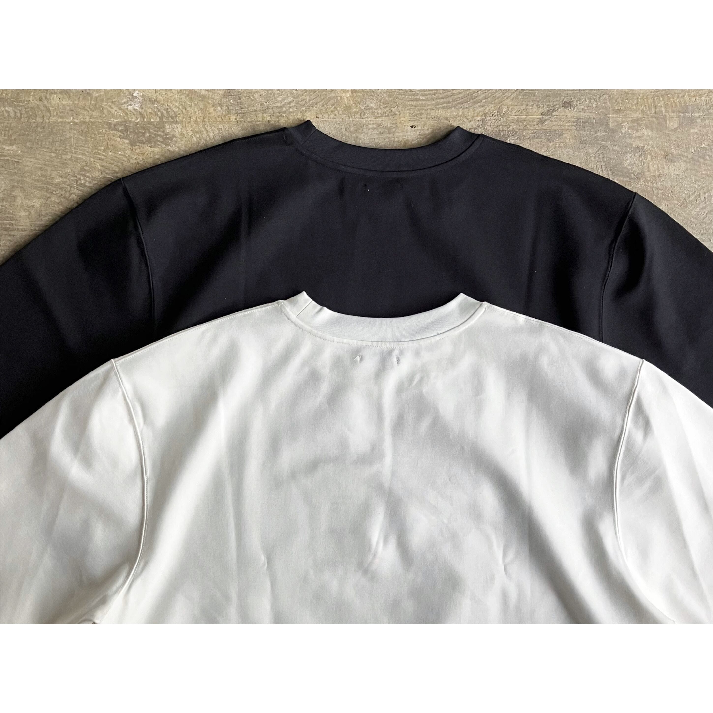 一般的なロンT以上、裏毛スウェット未満の絶妙な生地感は、ありそうで探すとなかなか見つからない、しっかりとした中肉生地での仕上がりですの、秋、冬、春と3シーズン着られる汎用性の高さが魅力的です。