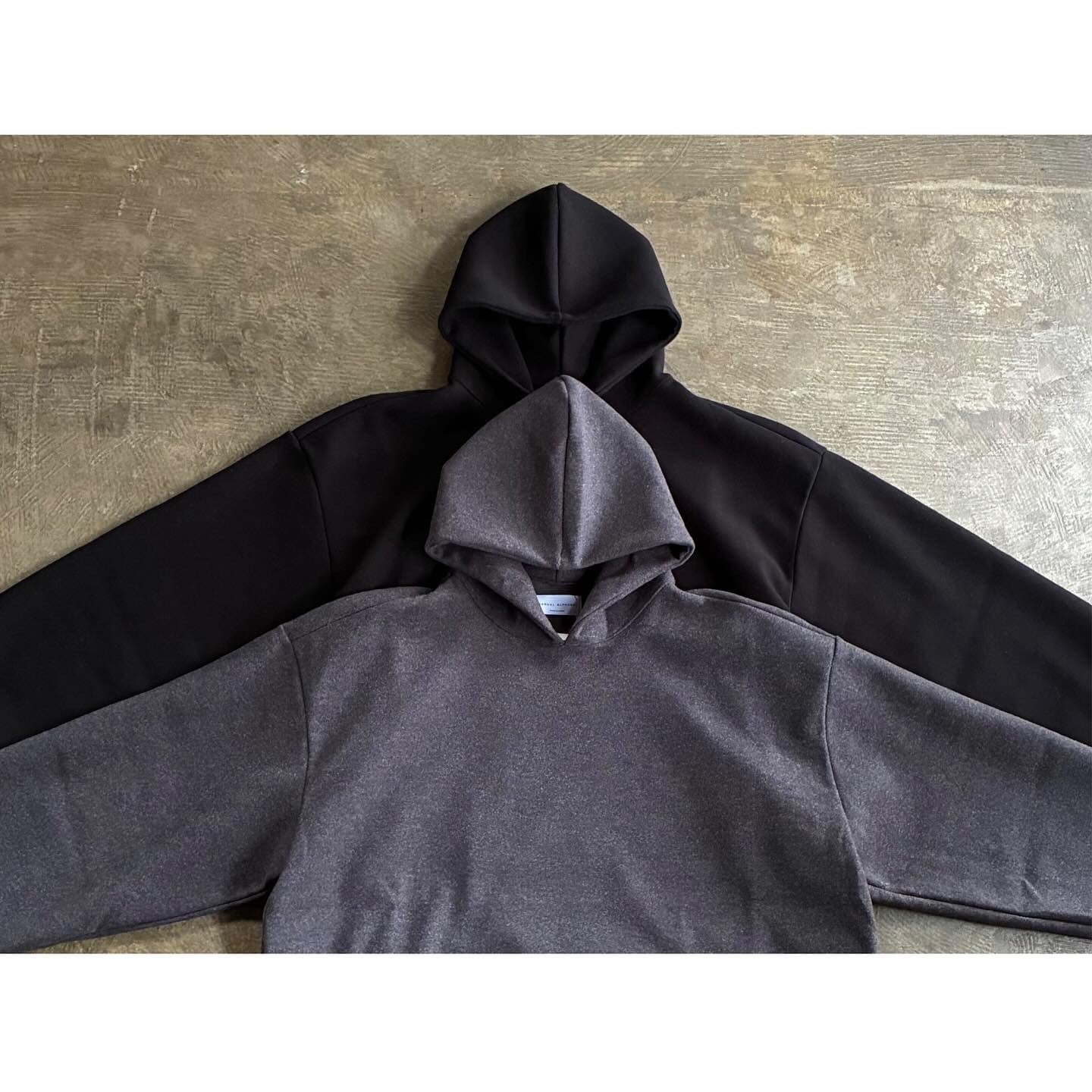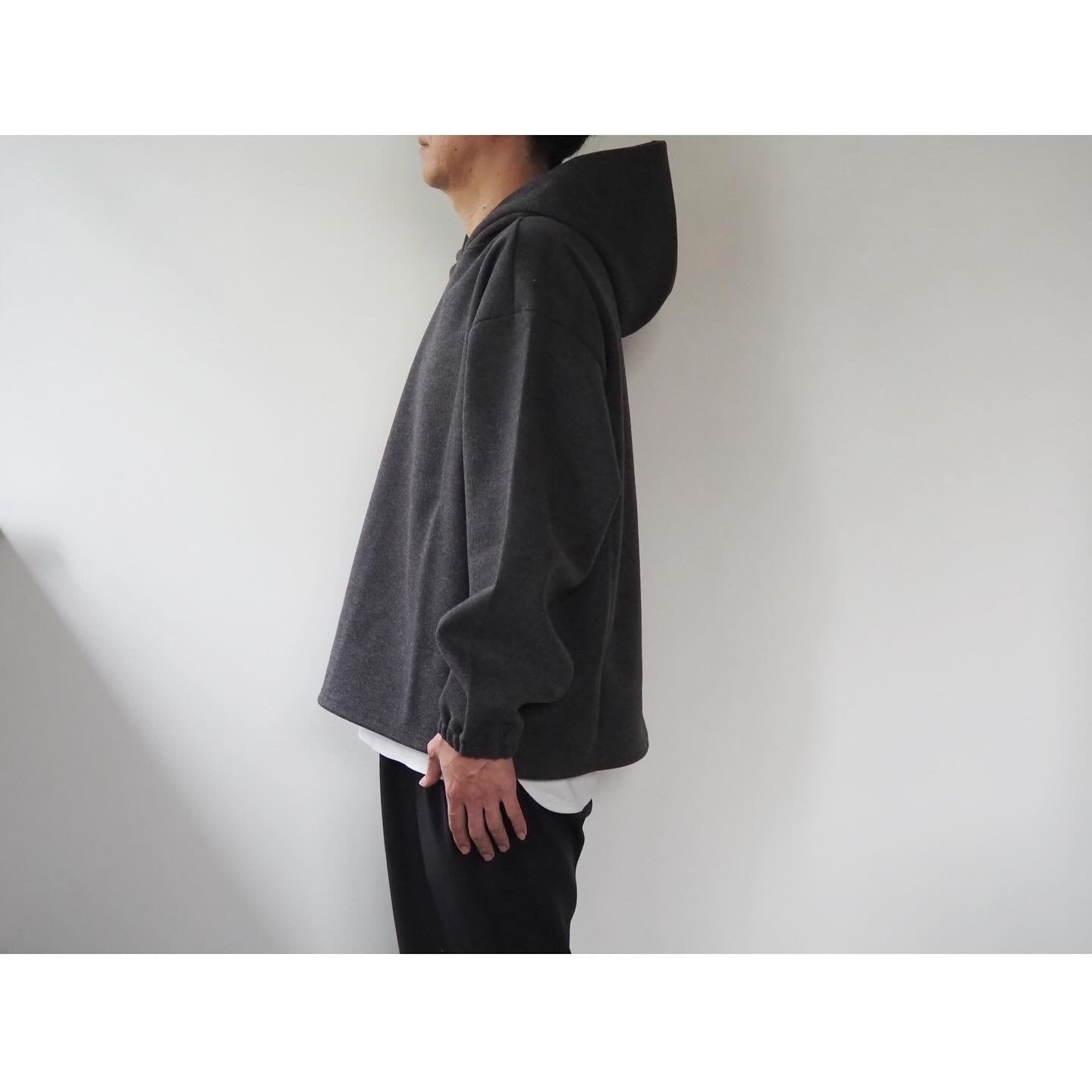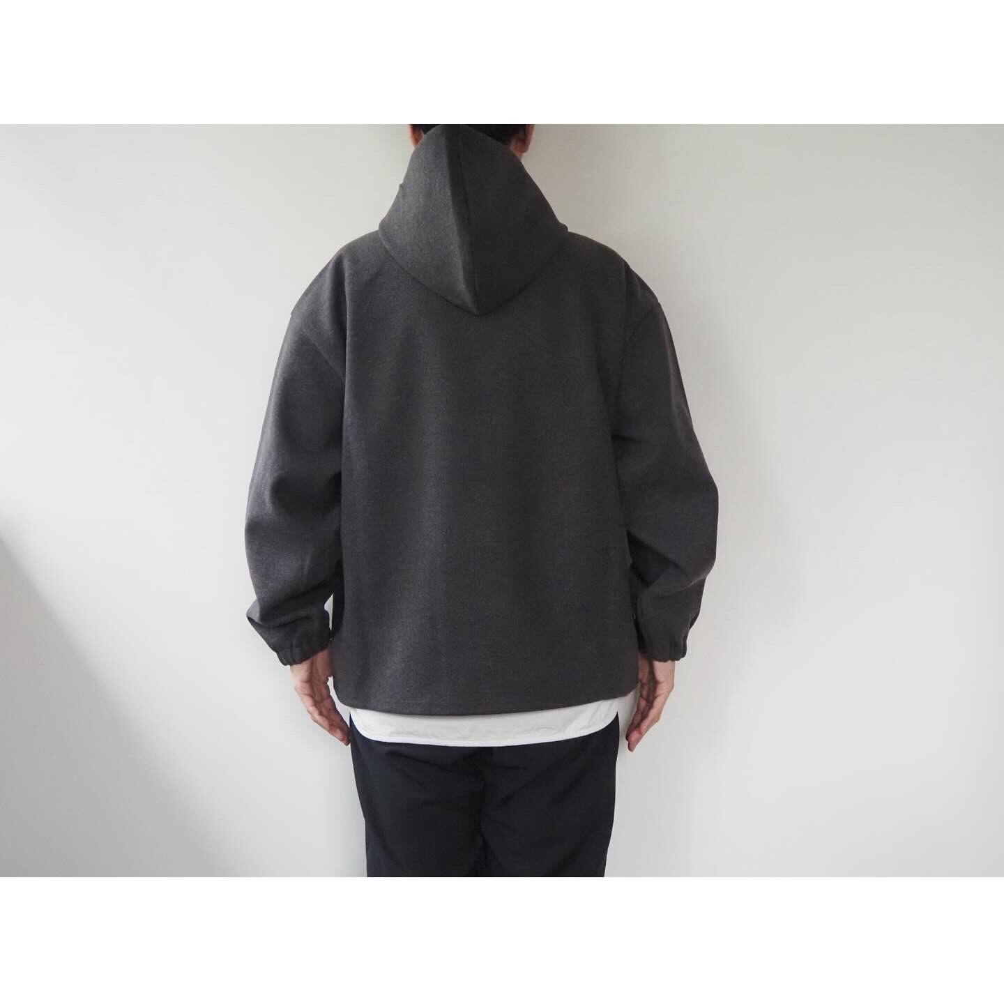 ウールライクなメルトンジャージー素材を使用したプルオーバーパーカー。
