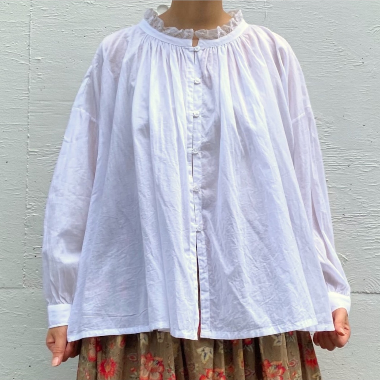 SOIL(ソイル) 60'S Cambric Plain Lace Neck Lace Gathered Smock