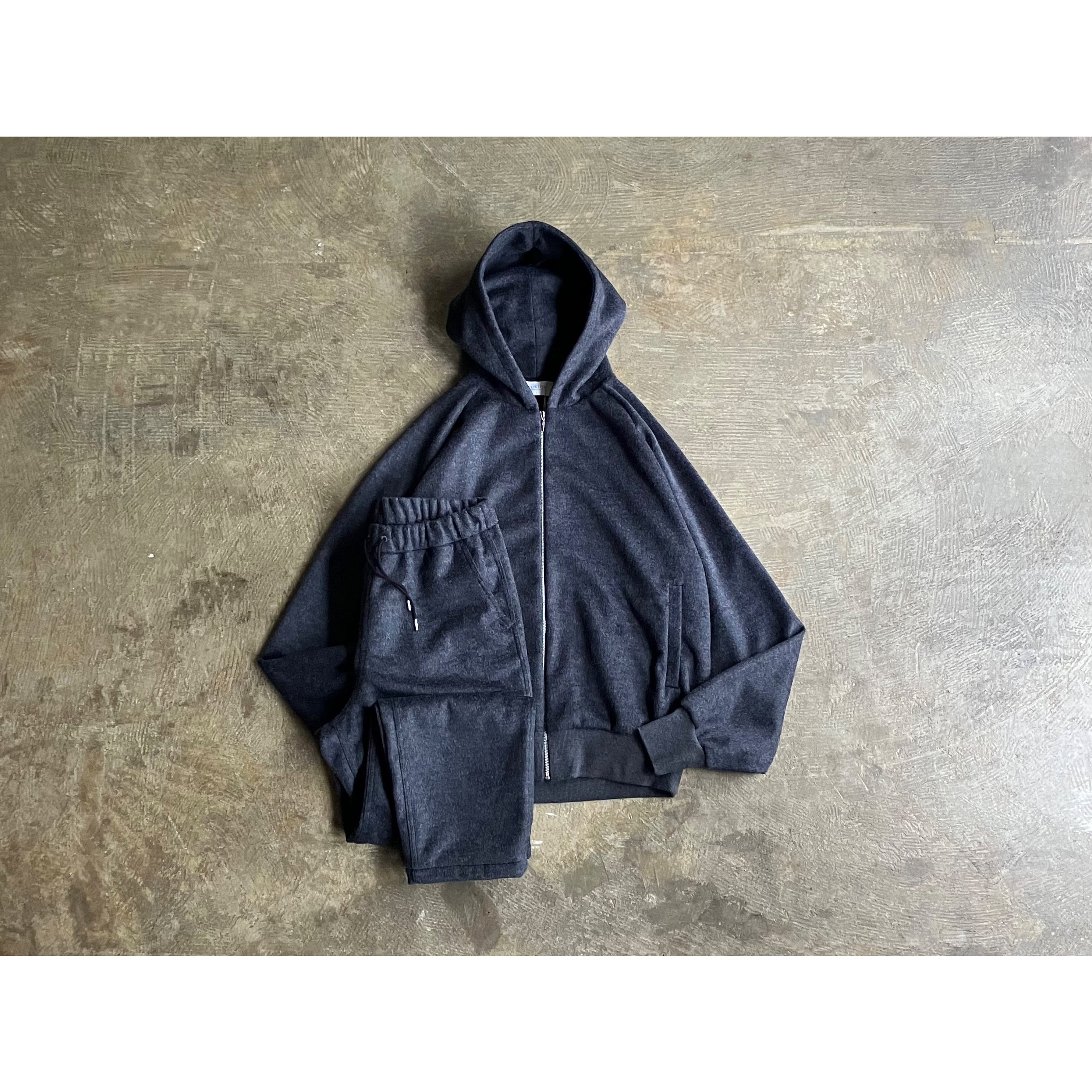 こちらのアイテムの単体使いでも良いですが、品番「FH01016」の同素材のフルジップパーカーもセレクトさせて頂いておりますので、セットアップでのコーディネートもお勧めです。
