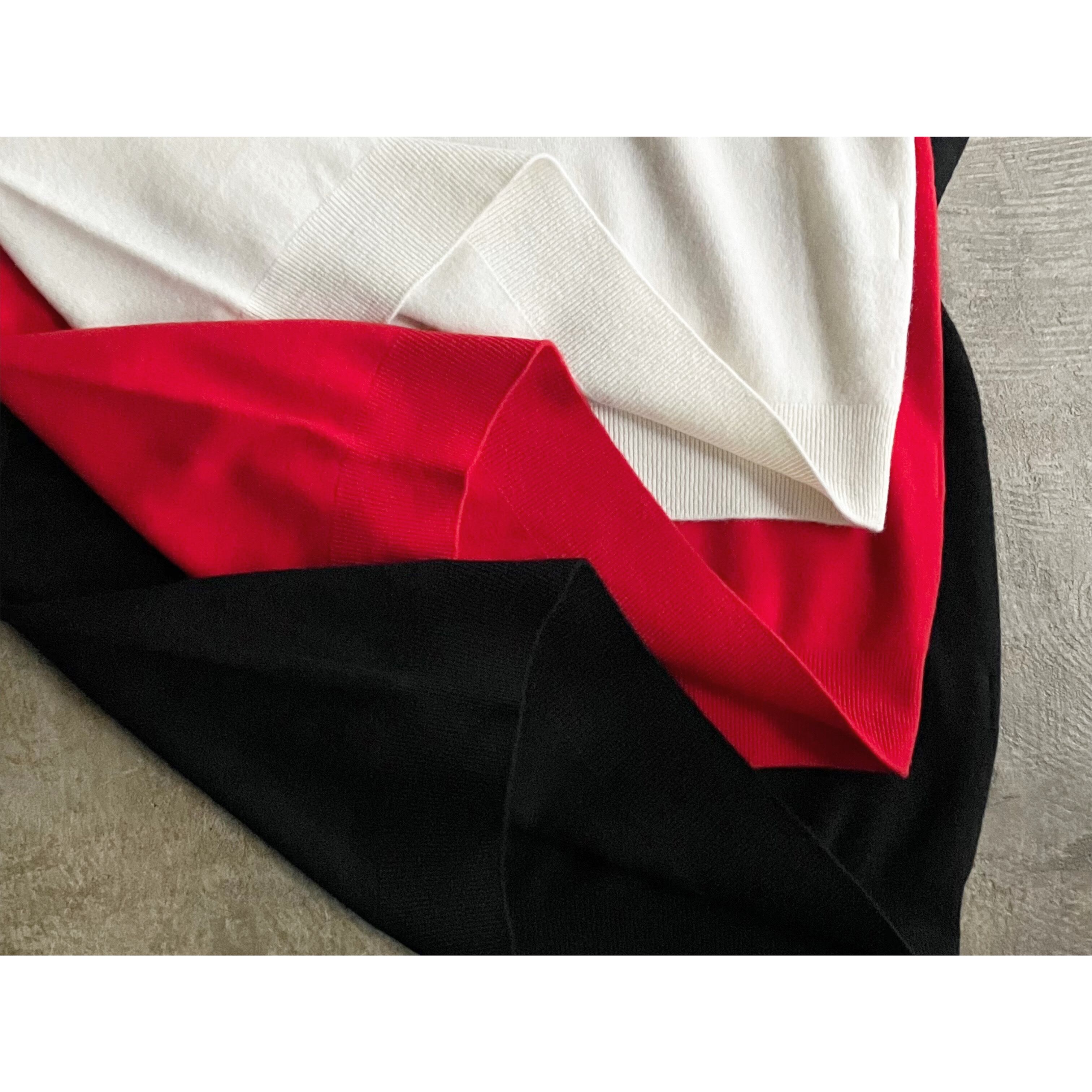 お色は、汎用性の高い定番的なオフホワイトカラーとブラックカラーに加え、トレンドのカラーのレッドカラーを取り入れた、計3色でセレクトしました。